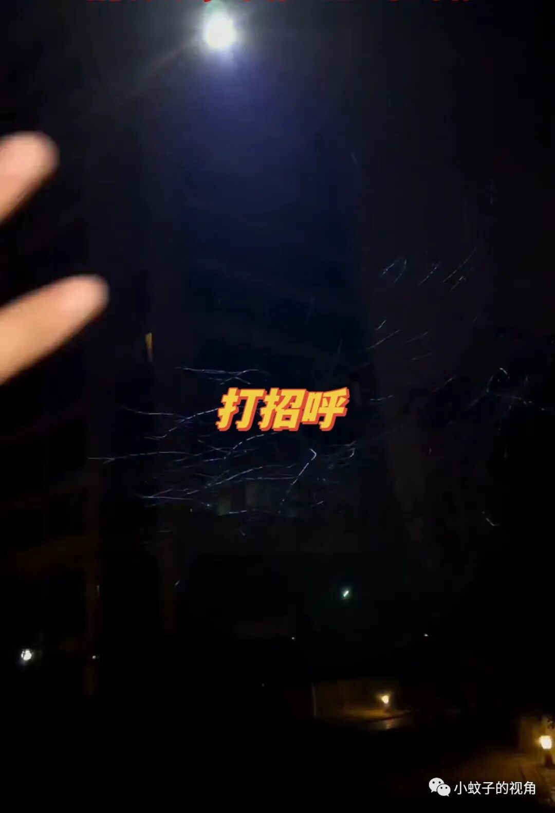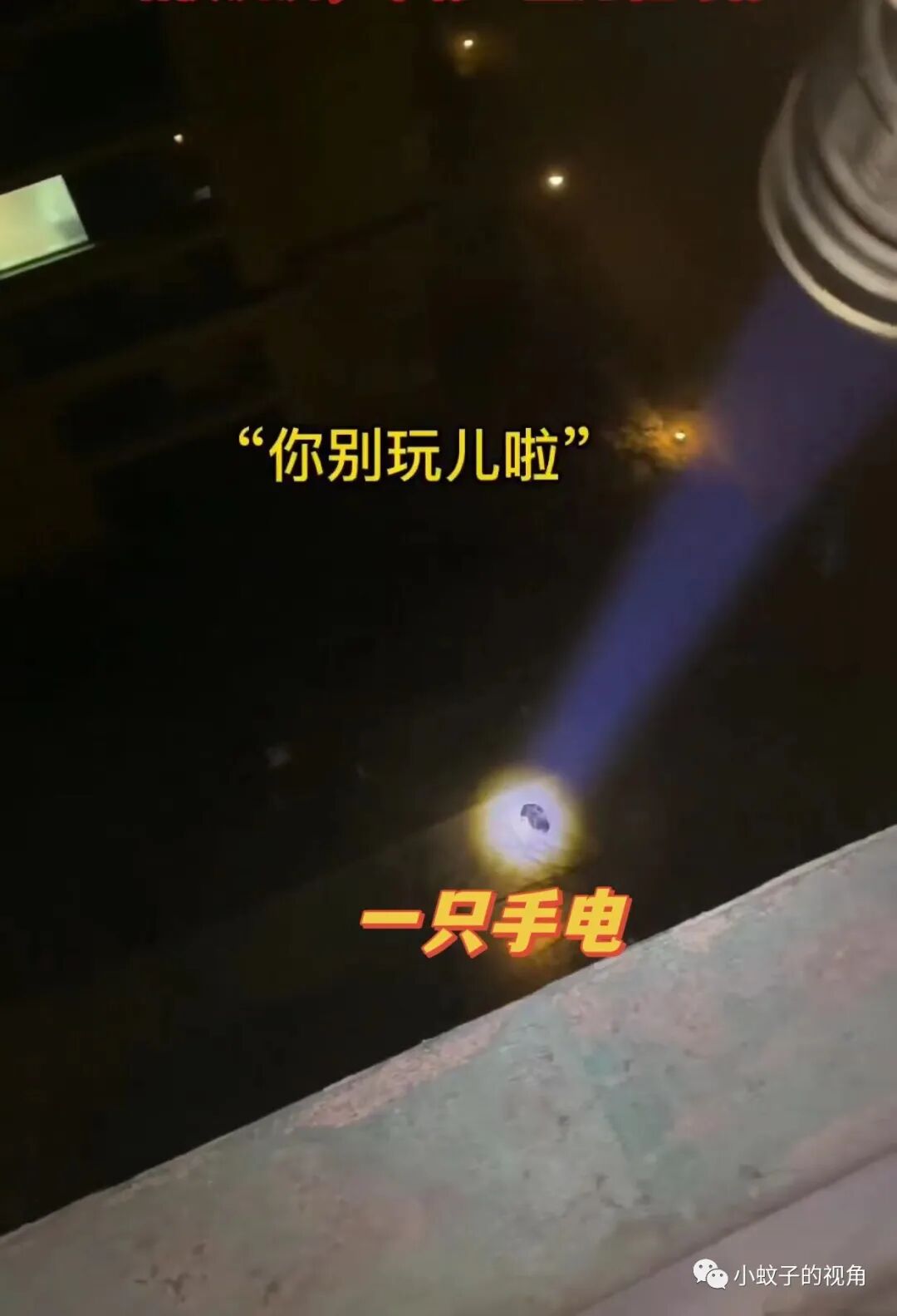 这束光却一直跟着他的脚步,他走到哪,这束光就照到哪。男子玩得不亦乐乎。