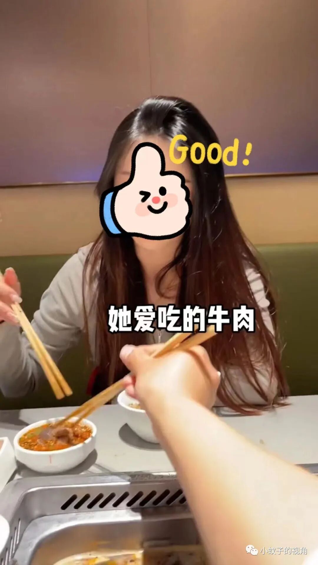 两个人一起吃火锅的时候,男生夹起刚涮好的毛肚放在女生碗里,还有她爱吃的牛肉,她爱吃的山药、她爱吃的洋芋……