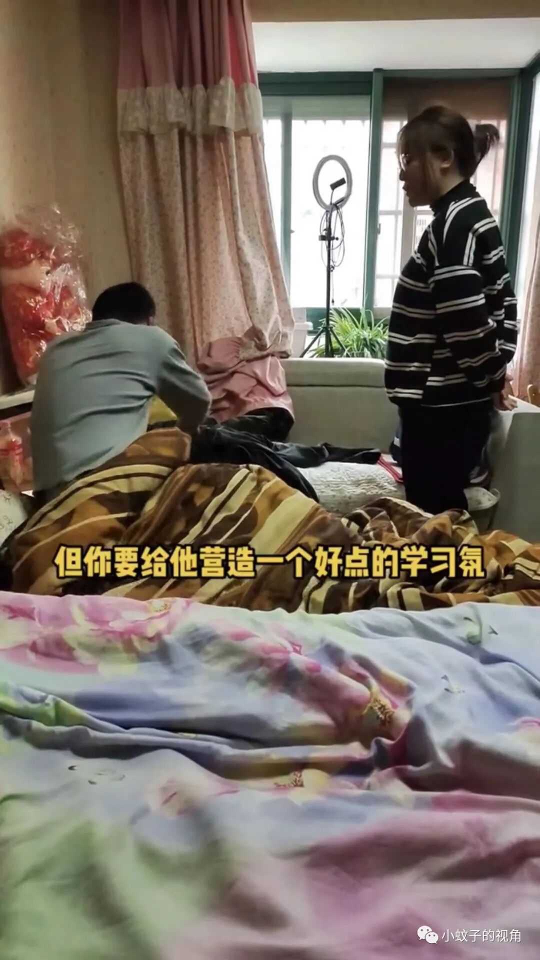 这一天女子回到家,发现小叔子坐在床边玩手机,公公也躺在床上抱着手机玩得开心。