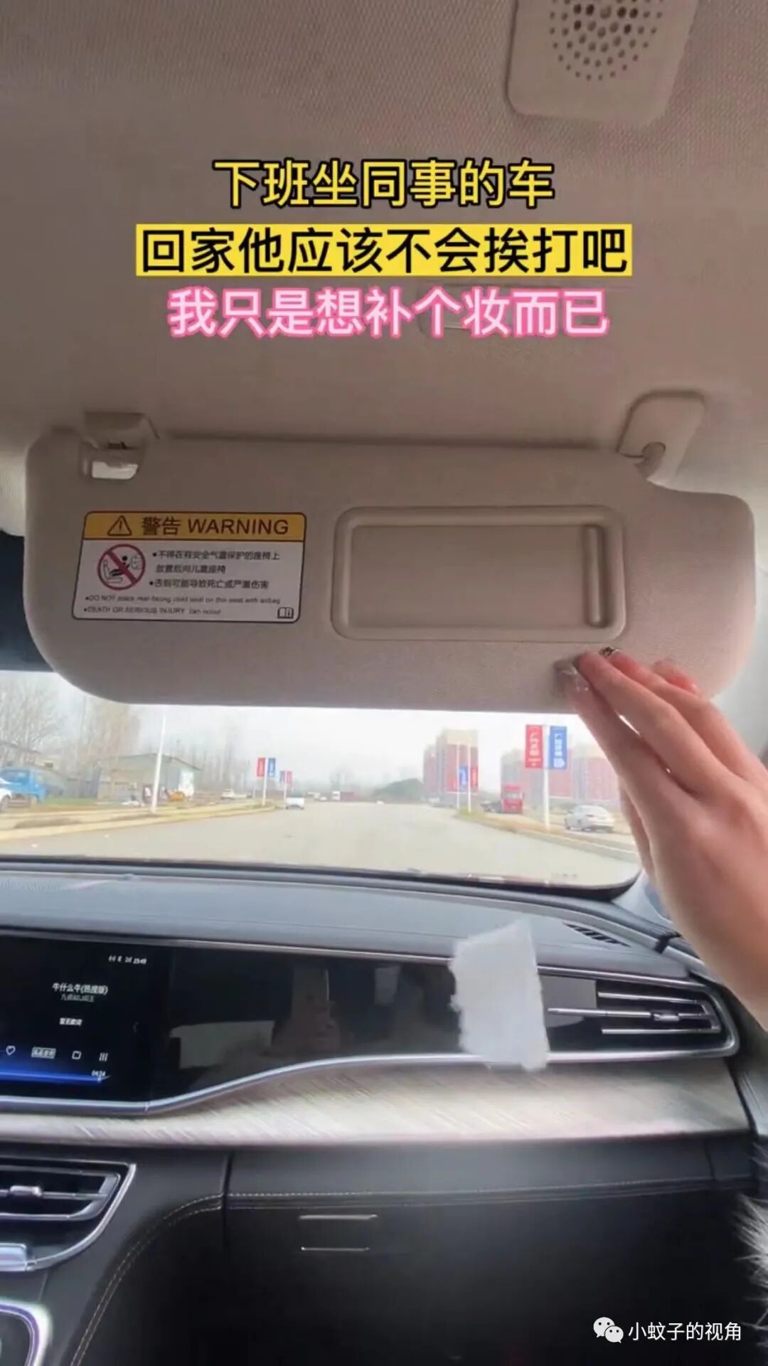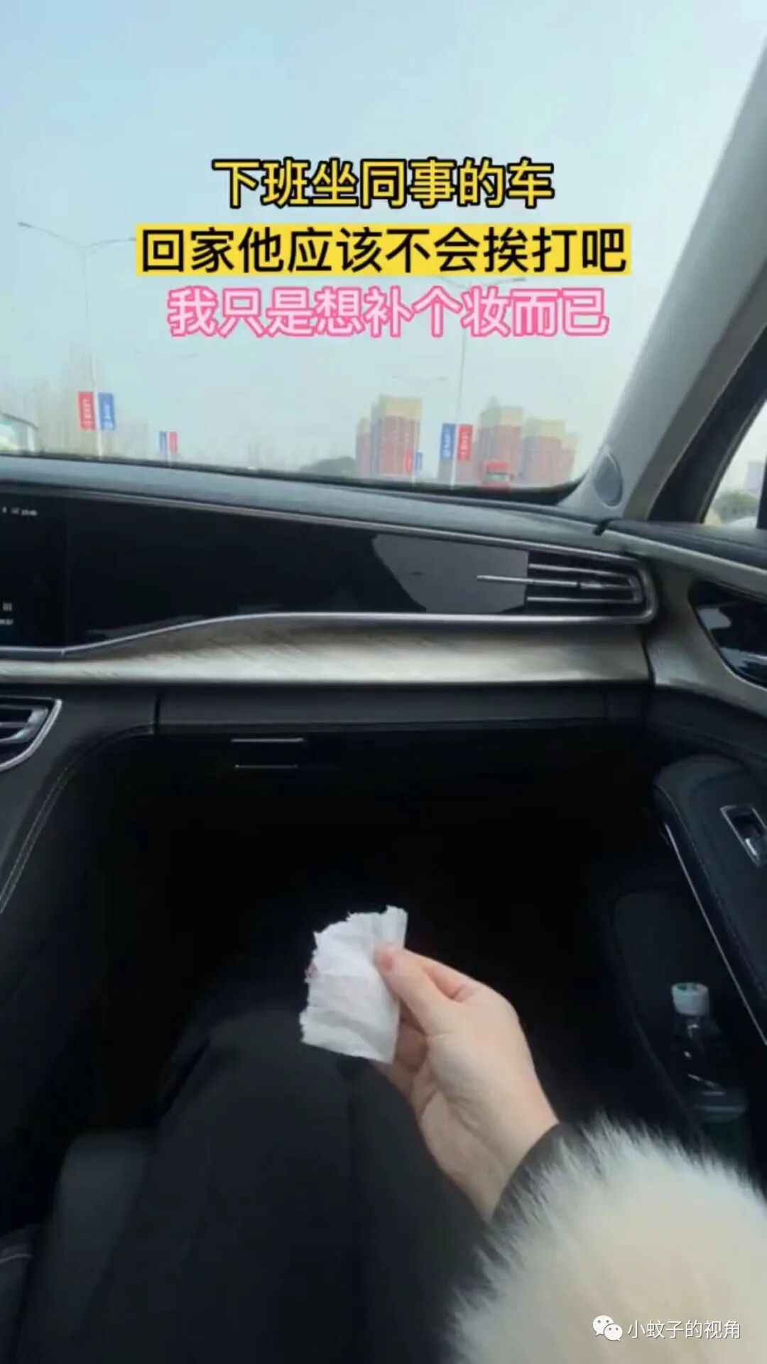 也有网友说:本来坐男同事车子的副驾驶就是你的不对,你还想去使用化妆镜,明明人家的纸条露着一个角,你却偏偏说你没看到,都这么巧?你觉得怨你吗?