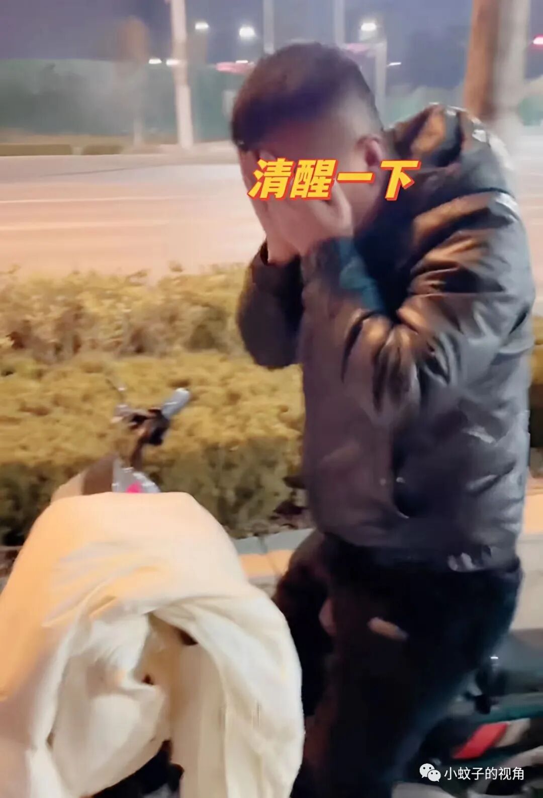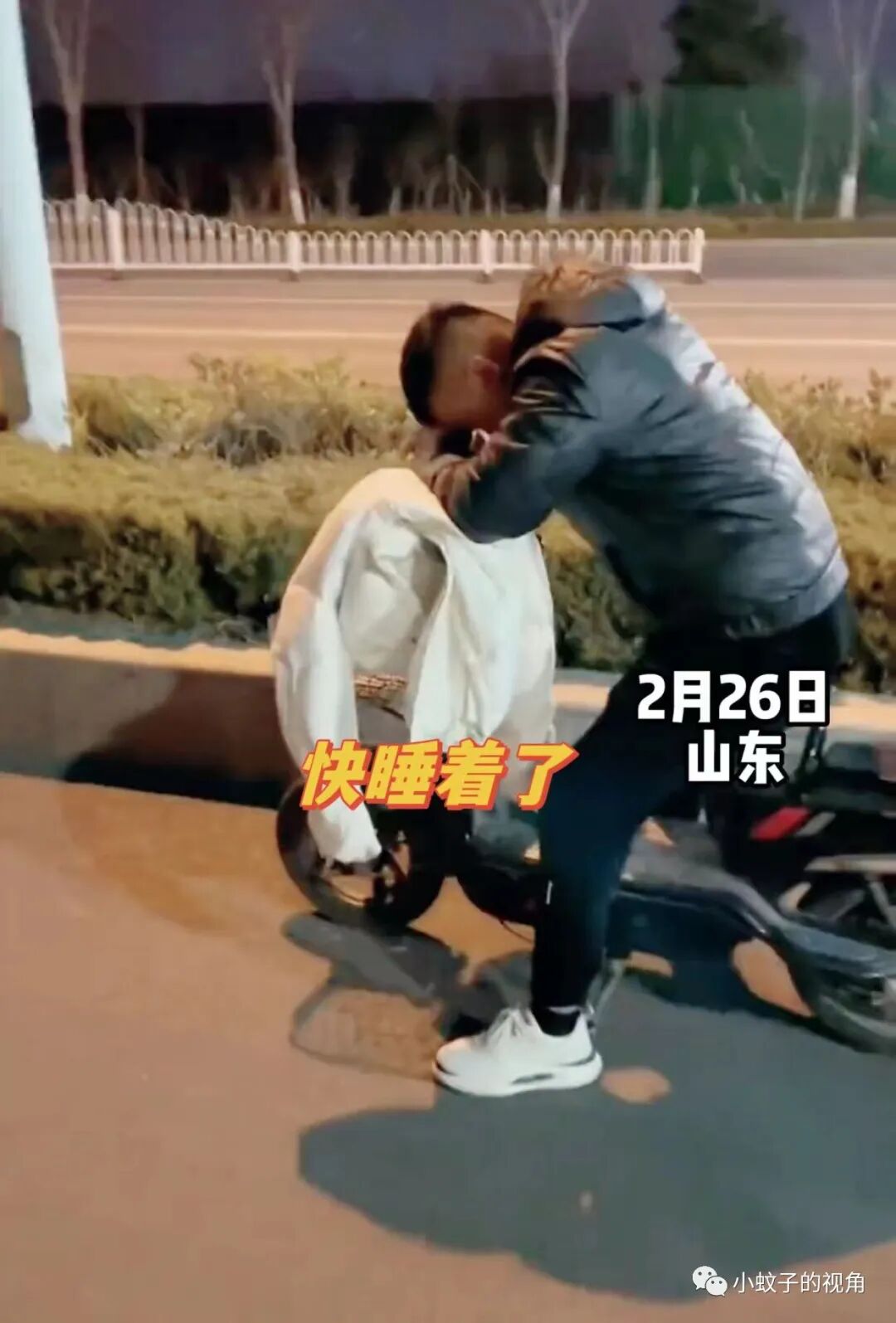 据这位女子介绍,这位趴在电动车上几乎要睡着的男人,正是自己的老公。