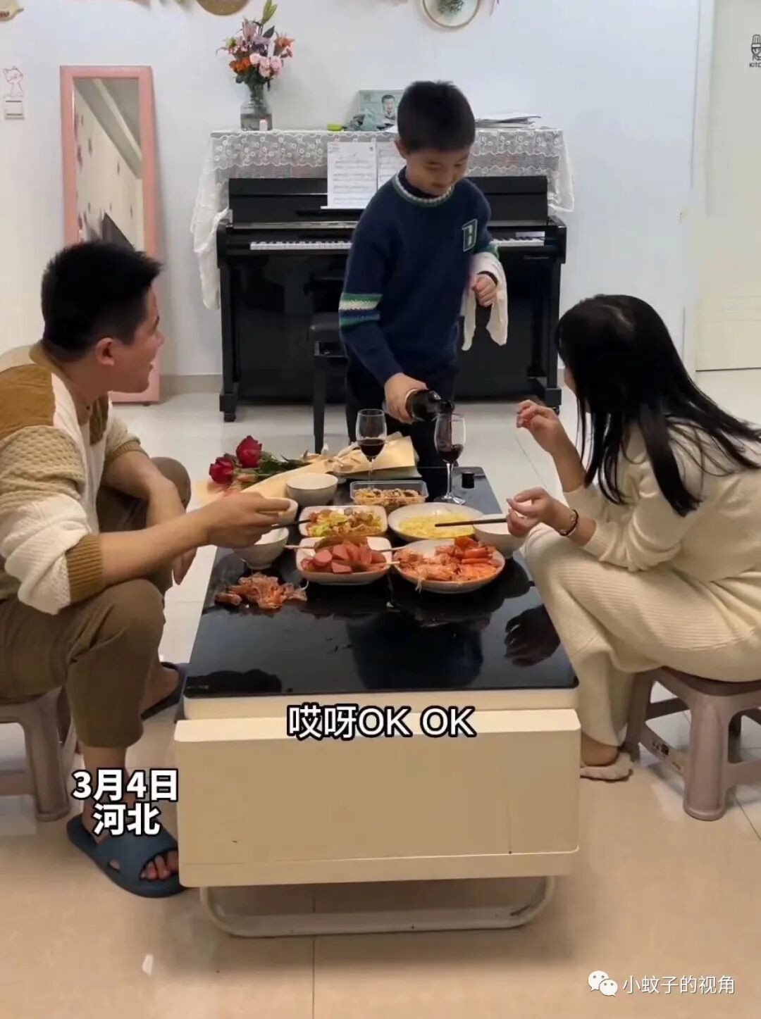 就像这对夫妻一样,两个人在家喝酒浪漫,儿子帮他们弹琴制造氛围。本来温馨的场面,在爸爸甩出小费的那一瞬间,忍不住笑喷了!