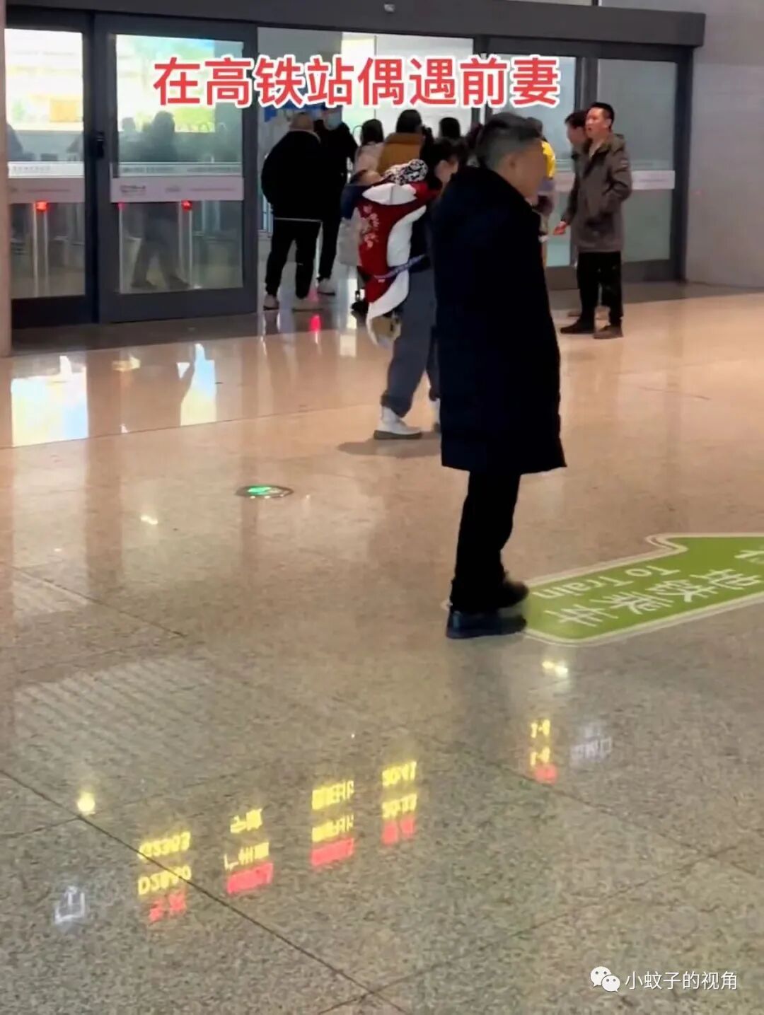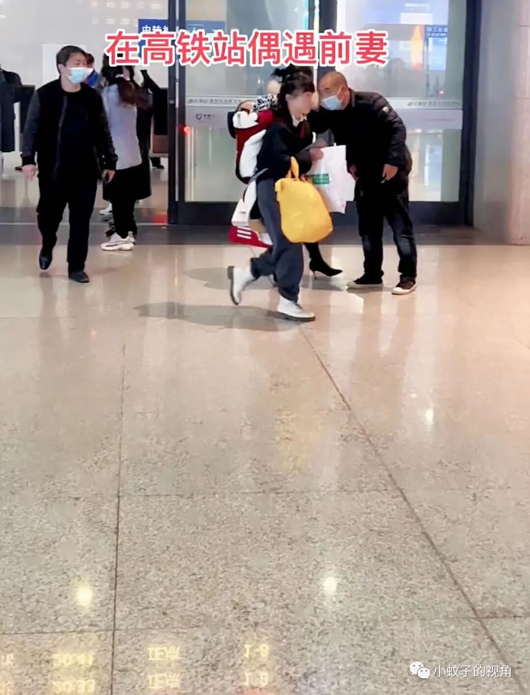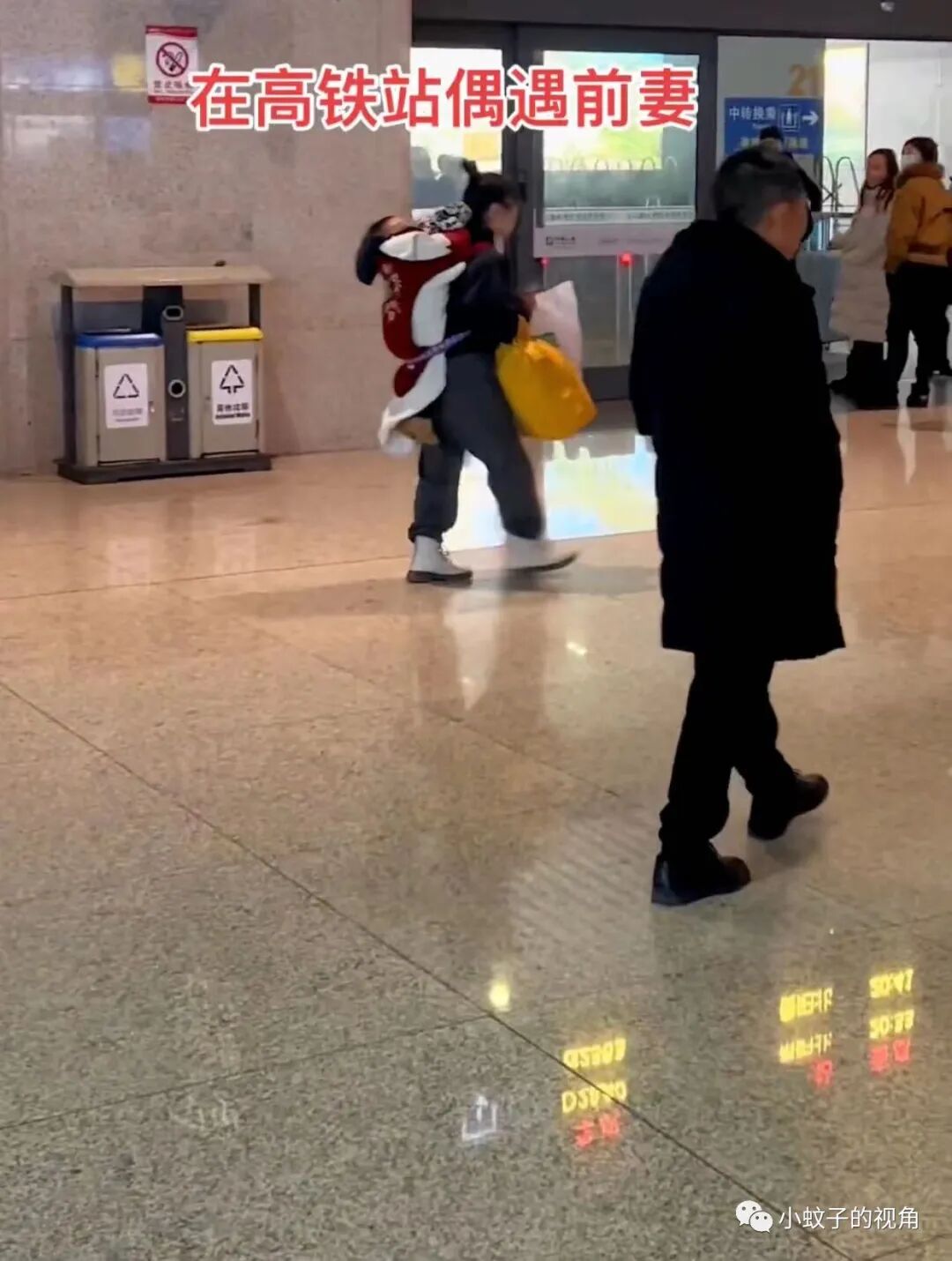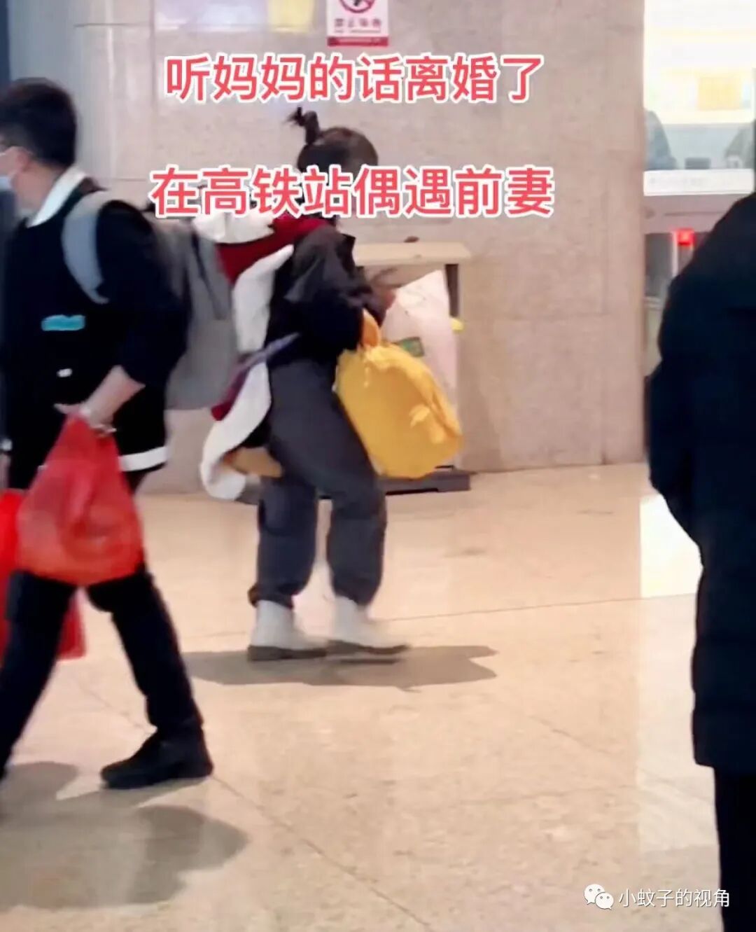 这个女人身后背着孩子,手里拿着行李,正行色匆匆地往站台里走去。隔着老远他认出来这正是自己的前妻和孩子。