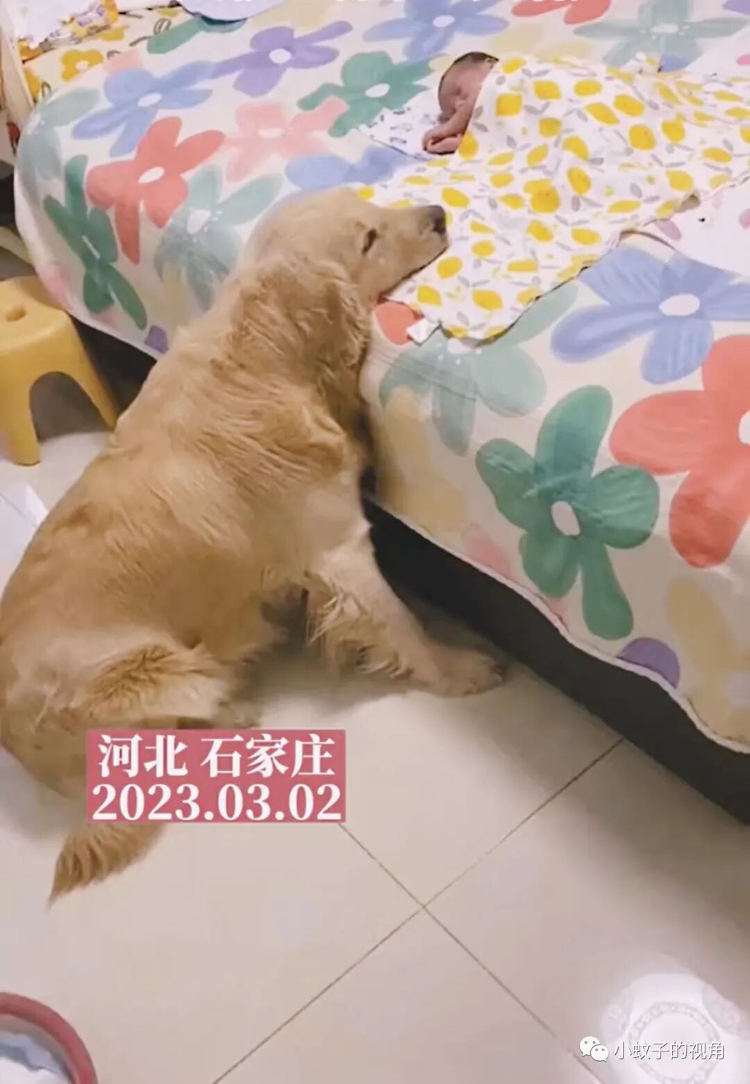 当女子不在屋里的时候,它总是守在床边,一动不动地看着床上的孩子,甚至怕孩子踢被子,还会将嘴巴放在床上,帮孩子压着被角。