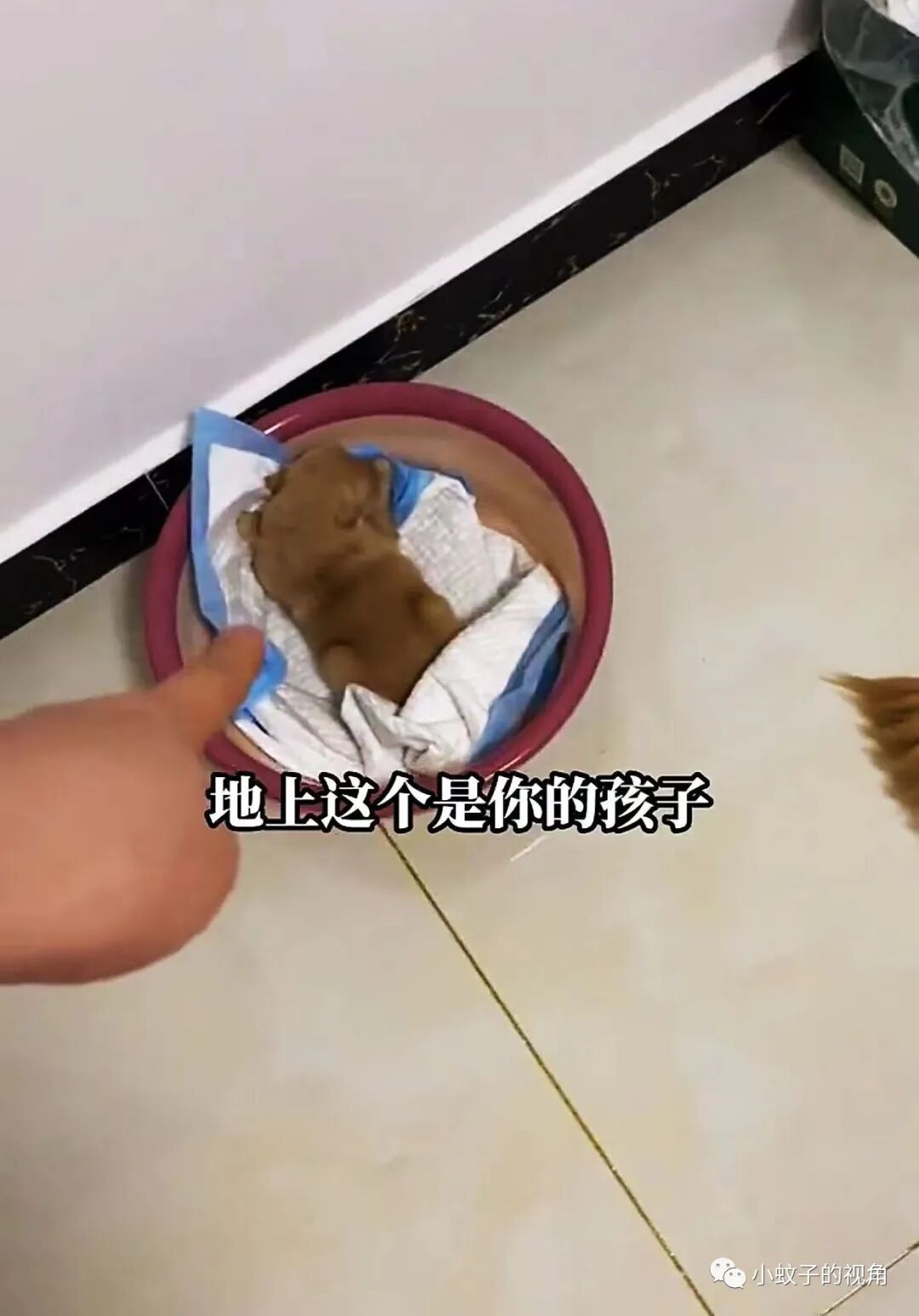 女子忍不住教训它:不行,我觉得有必要跟它说一下,地上这个才是你的孩子,床上这个是我的孩子。