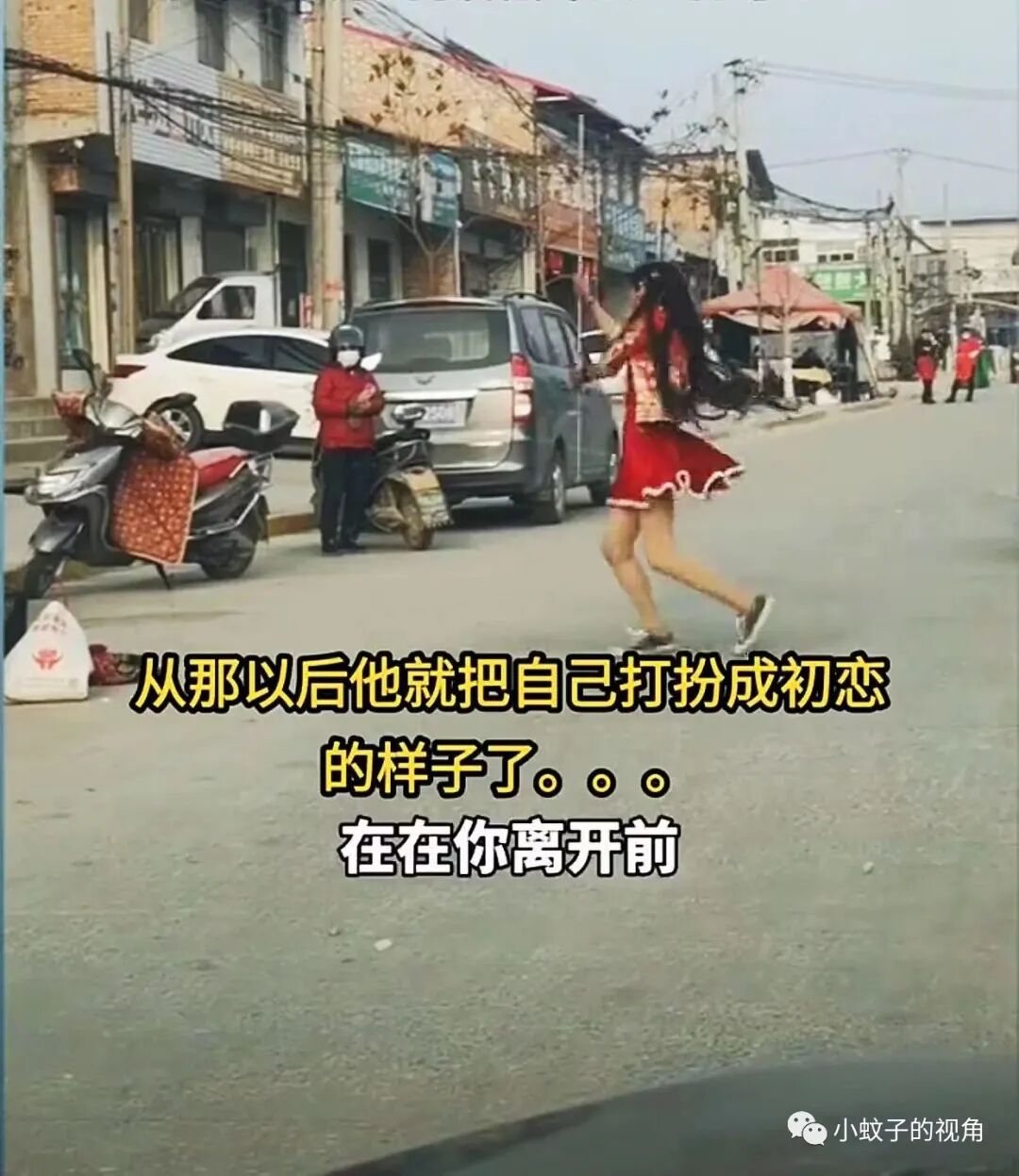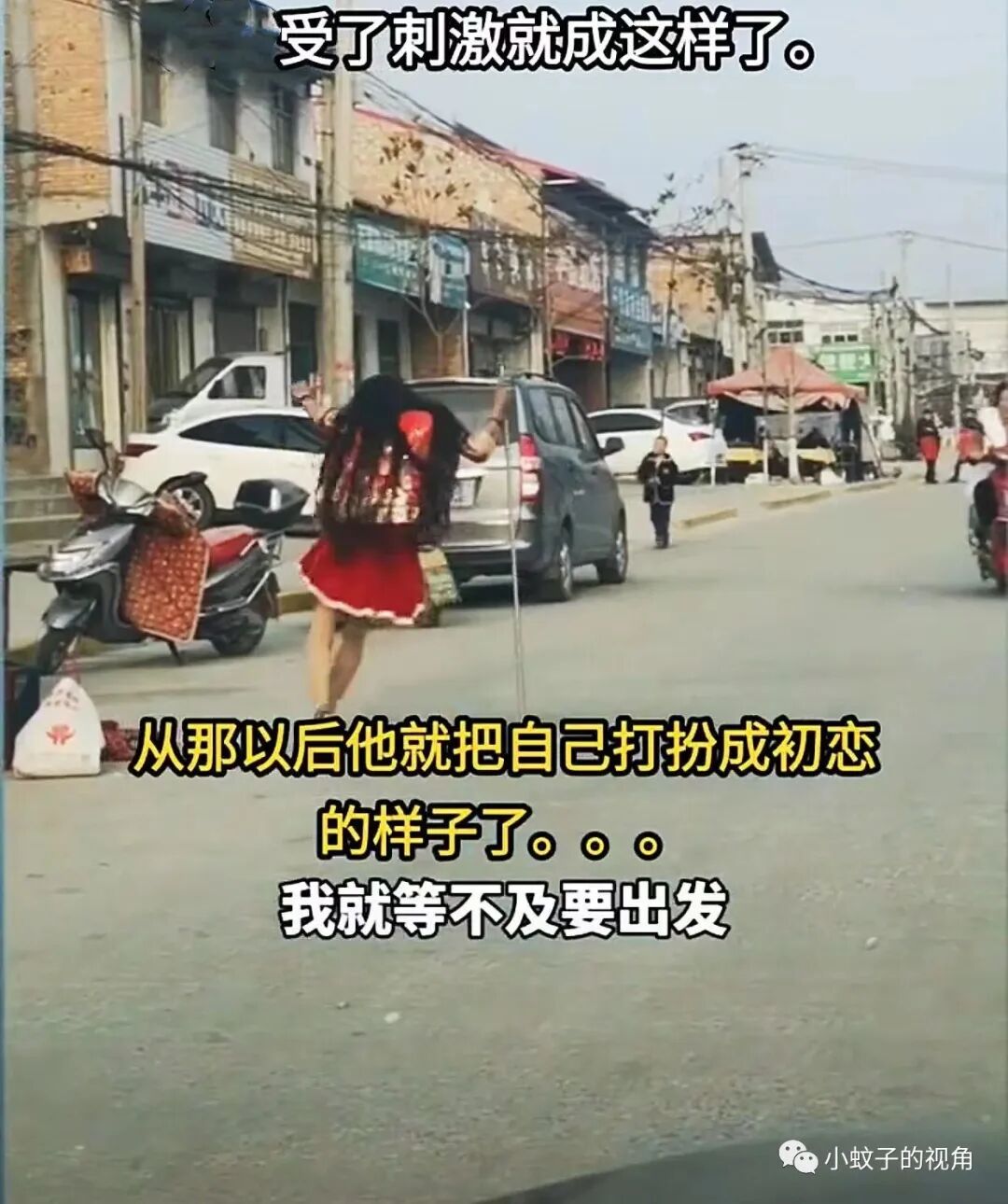 可能是因此精神受到了刺激,他从那以后就变成了这副模样,天天扮成前女友的样子在大街上跳舞。