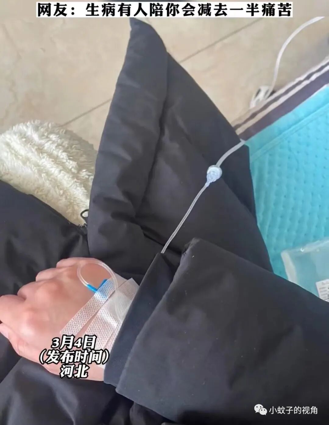 当护士给她挂上水时,她终于松了一口气!却发现对面还有一个女子在挂水,明显也是刚来没多久,瓶子里的药水还有很多。