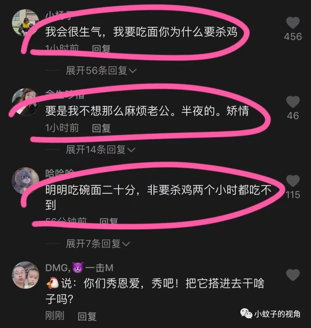 也有网友说:明明吃碗面二十分钟,非要杀鸡两个小时,都吃不到了。