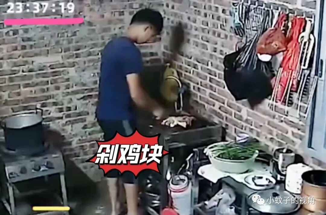 于是,勤快的他开始抓鸡、杀鸡、烧开水给鸡褪毛,然后再剁成鸡块煲鸡汤,最后用这鸡汤帮媳妇做面条。