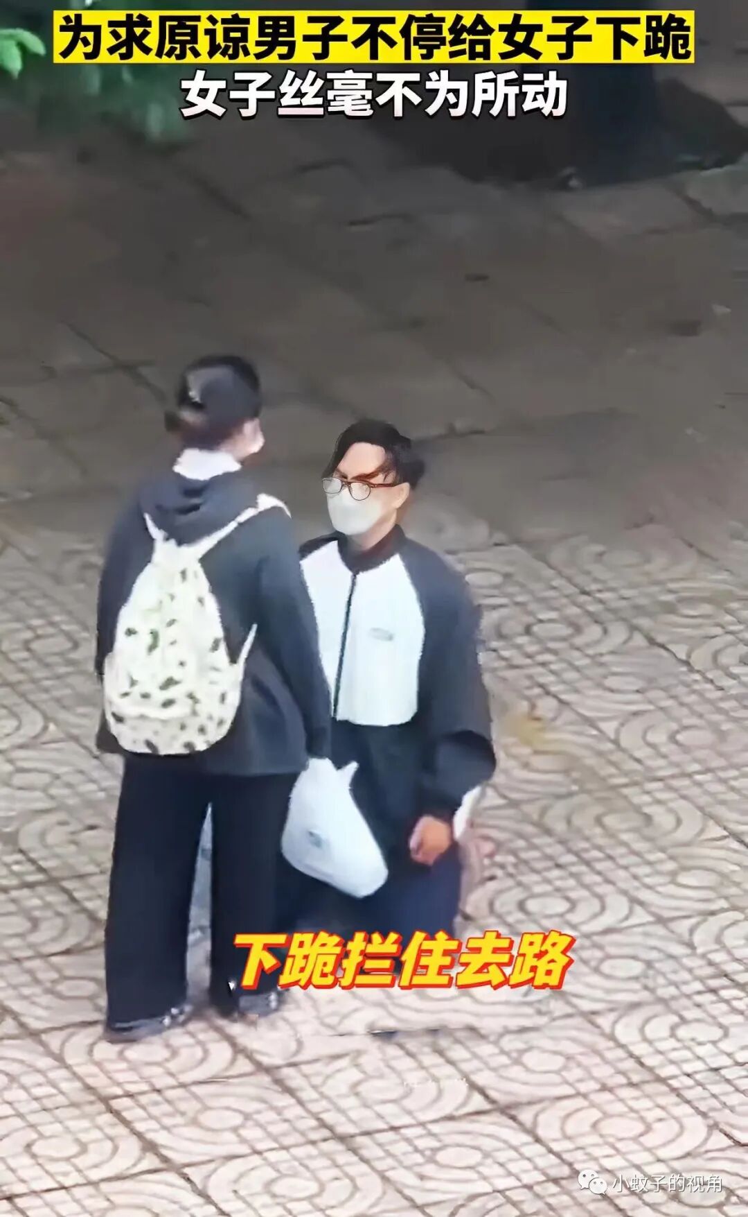 短短的几分钟,男子多次下跪请求女子的原谅,女子丝毫不为所动,一门心思想要摆脱男子的纠缠。