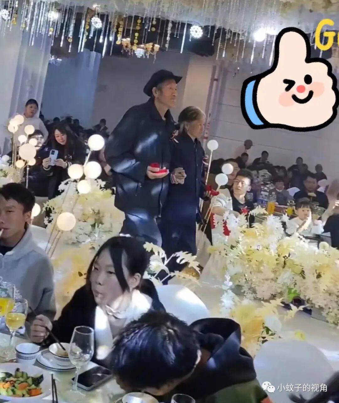 从爷爷牵着奶奶的手,到下台时爷爷的轻声安慰,都能看出这对老年夫妻的恩爱,这样持续了一辈子的恩爱才是对新人最好的祝福。