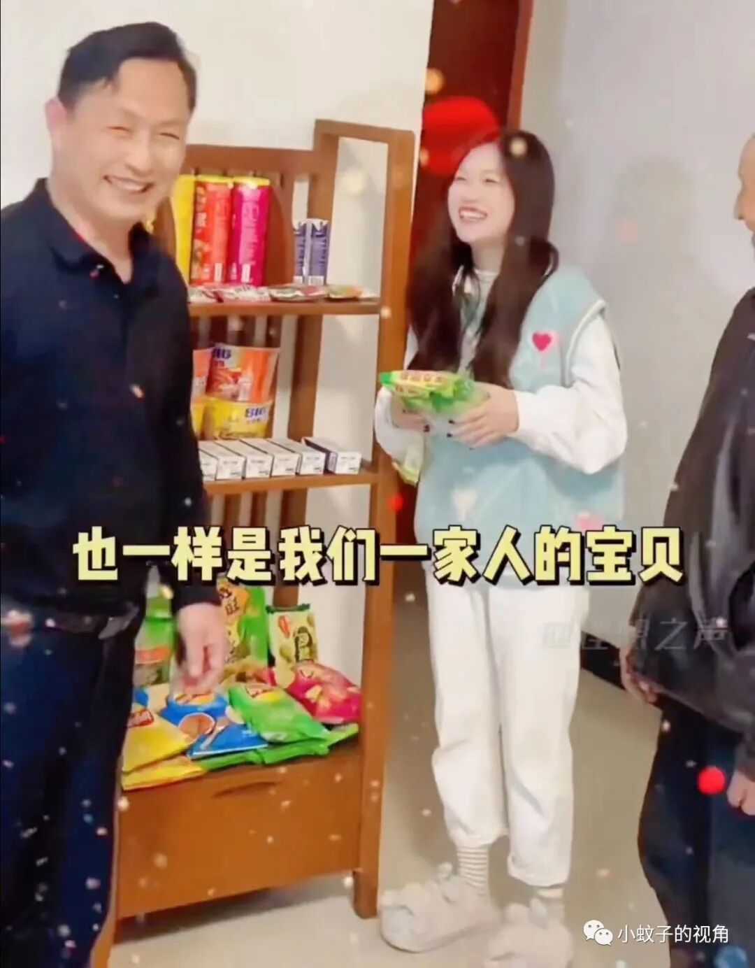 看着女朋友笑得开心,男孩表示:从现在开始她不仅是我的宝贝,也是我们全家人的宝贝!