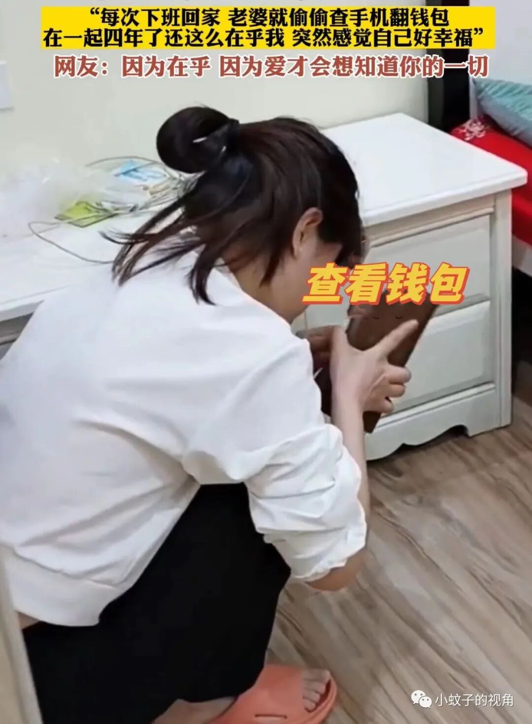 网友说:人跟人还真是不一样的,我却觉得她这样查看就是对我不信任。虽然我也没做什么对不起她的事,就是不愿意让她看。