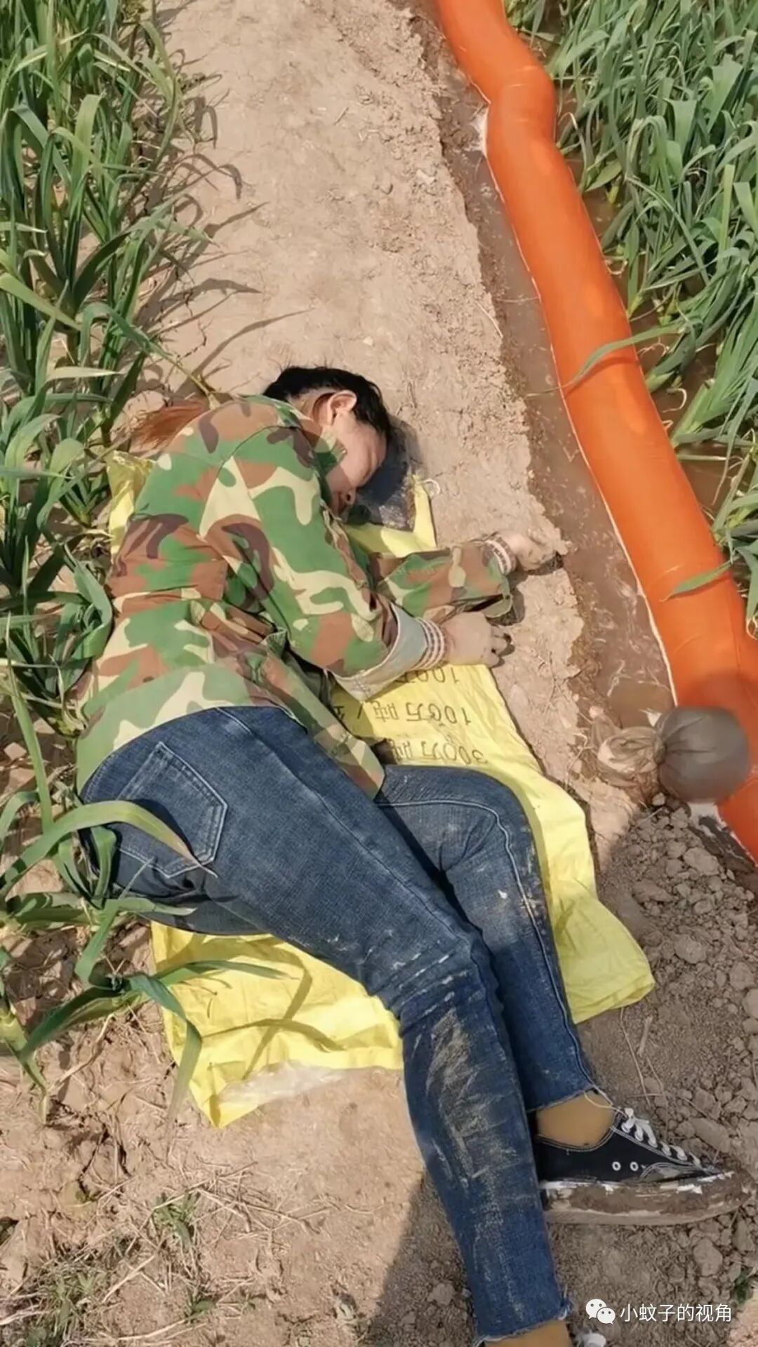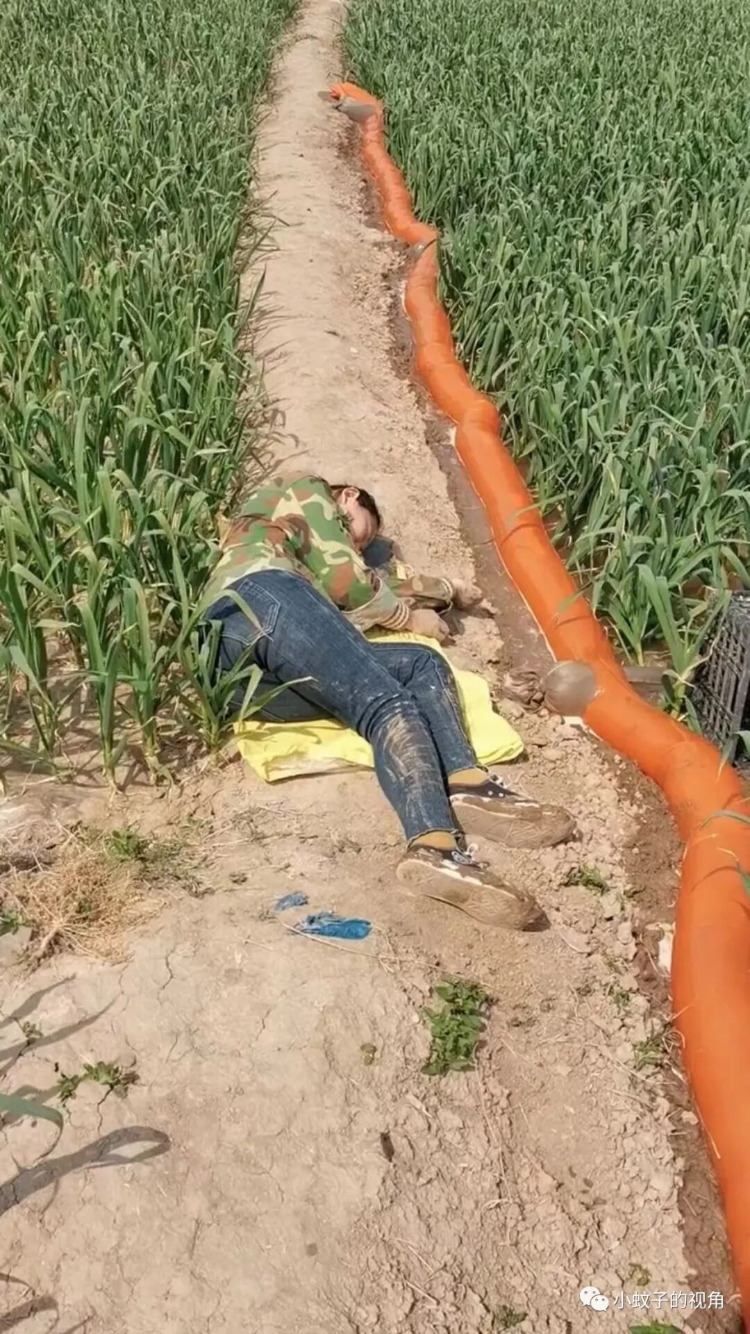 等老公来到地里的时候,他心疼地发现:老婆浑身的泥污都没来得及清理,躺在地头上睡得正香,呼噜打地还挺均匀。