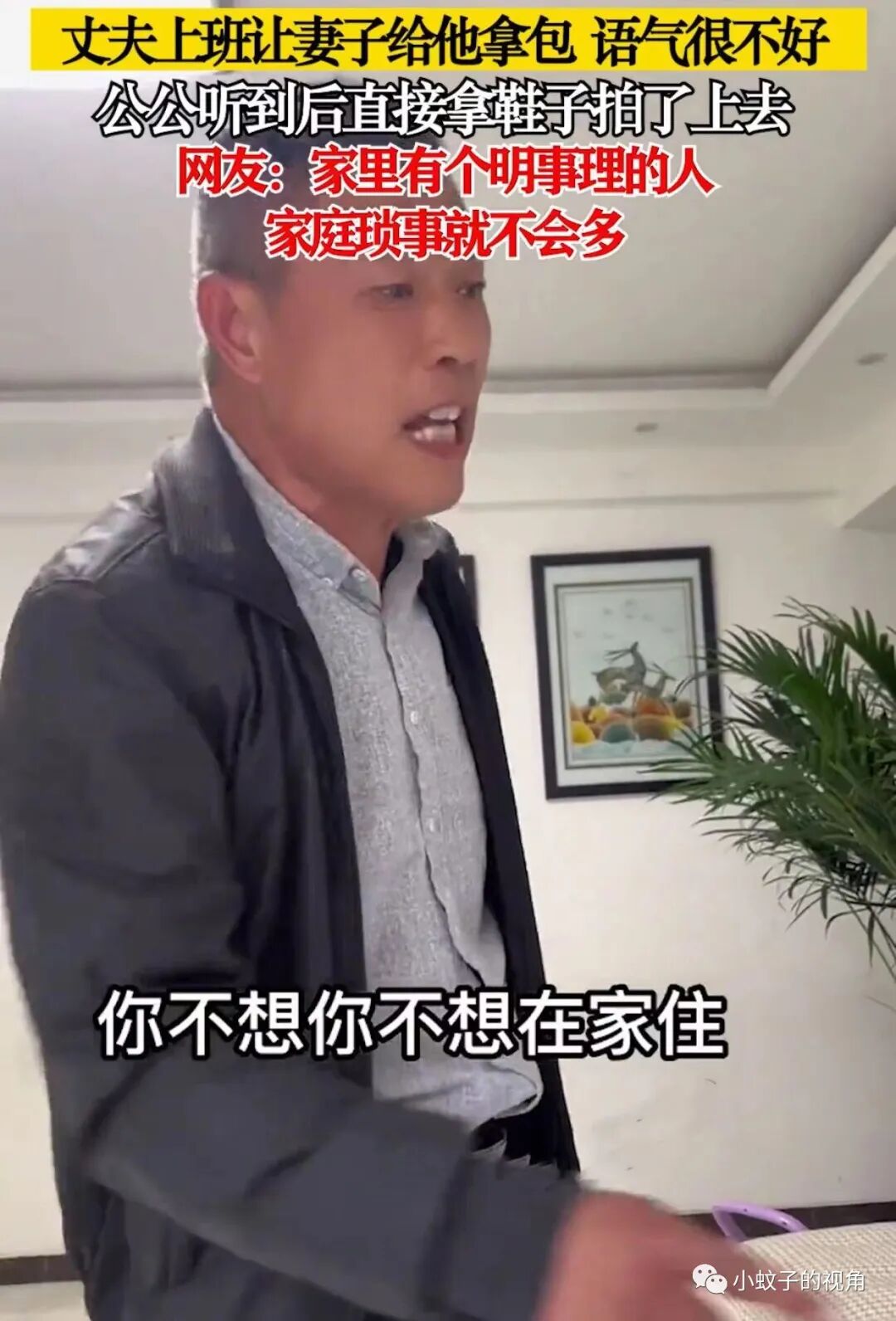 此时,自己的老公,儿媳的公公看见这一幕,听到儿子的语气不好,拿着拖鞋就冲了过来,对着儿子就拍了几下。