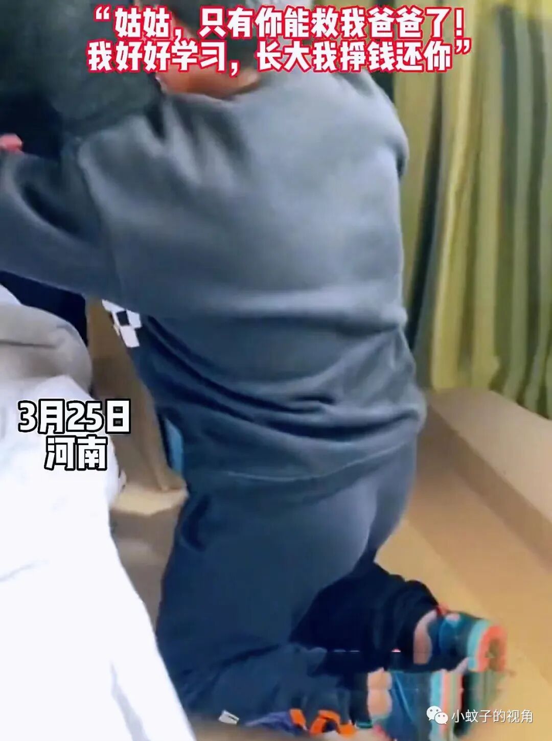 侄子却坚持跪在地上,一边哭一边说:“姑姑,现在就你一个人能救俺爸爸了,我知道俺家里面没钱了,现在只有你能救俺爸爸。姑姑放心,我一定好好学习,我长大了我还你钱。”