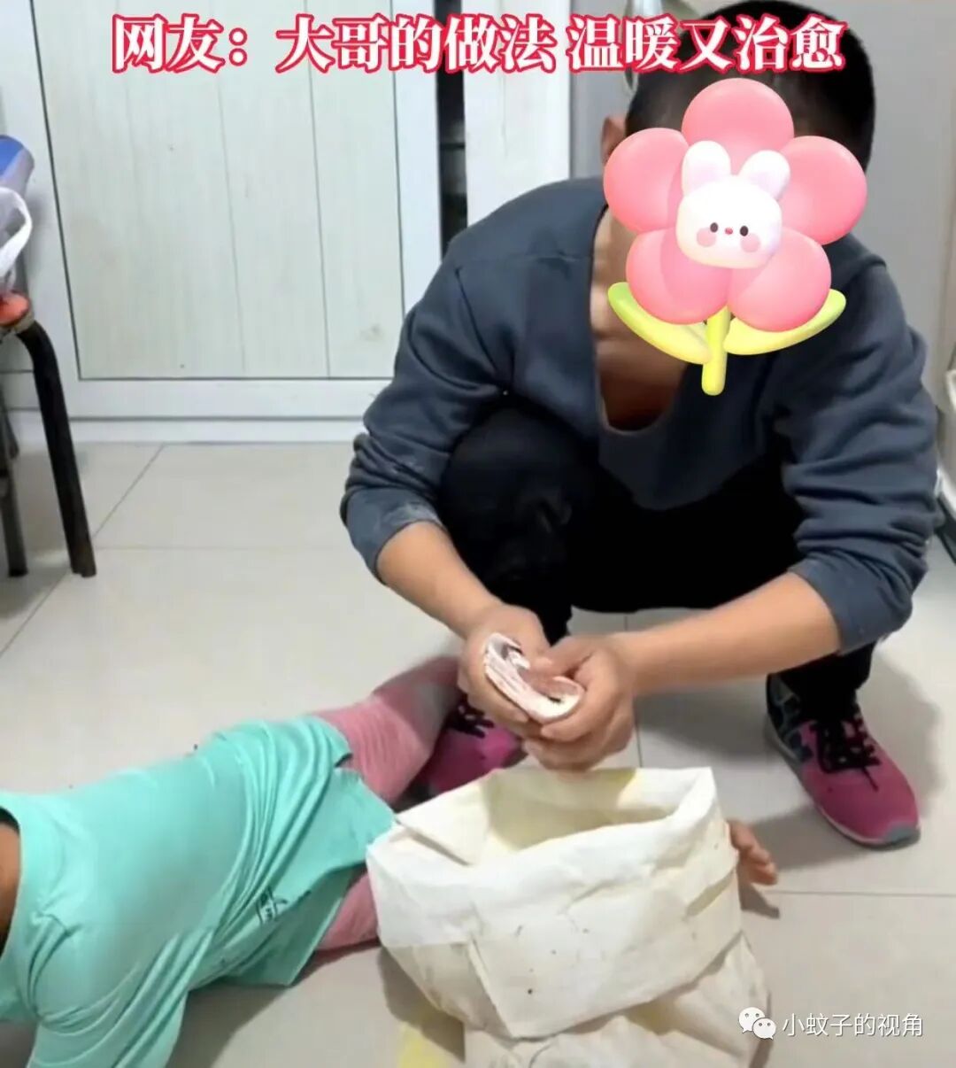 也有网友说:这位大哥做得没错,大哥的做法温暖又治愈。