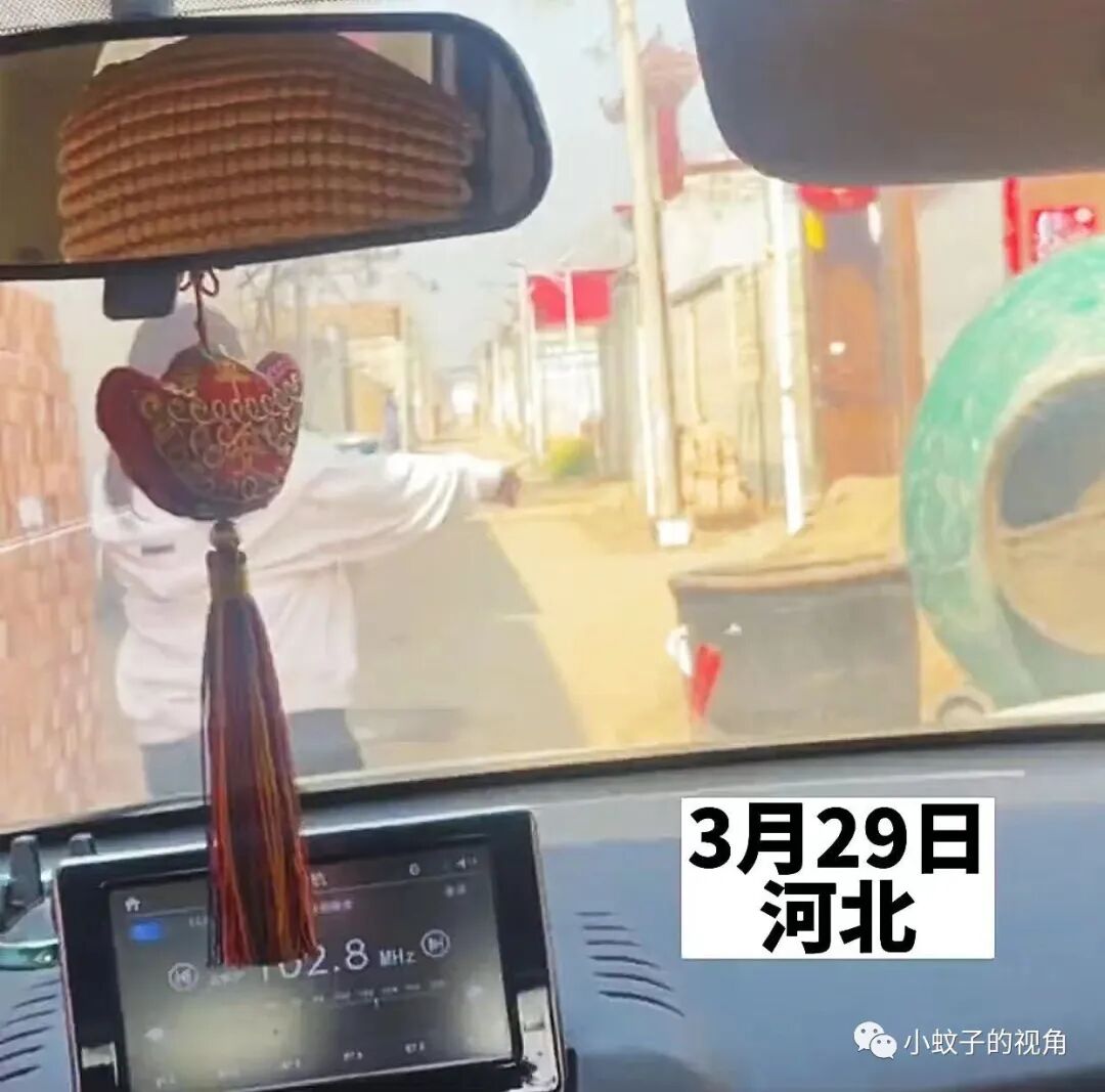 在男子的拍摄中,车前面有一位女子,正向着路边的一只大水缸走去。