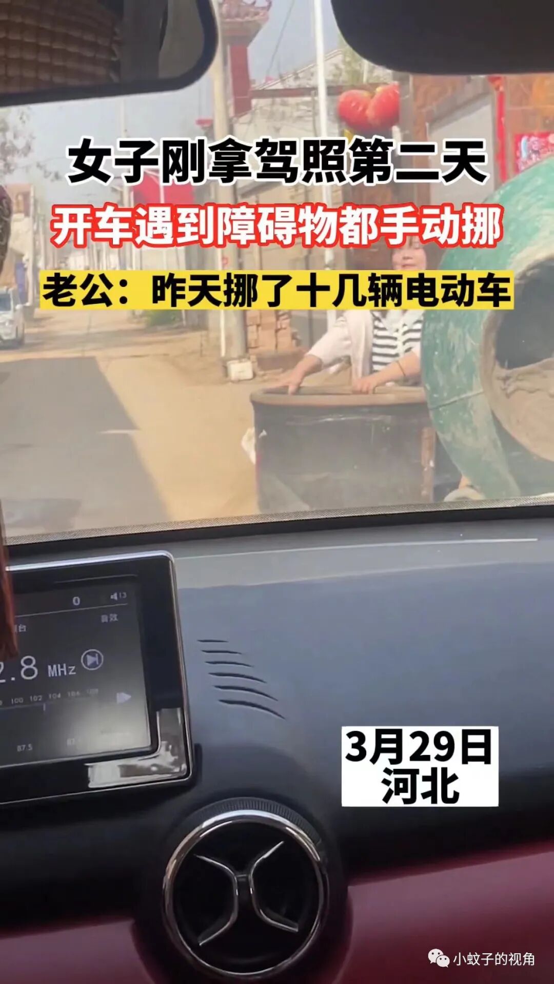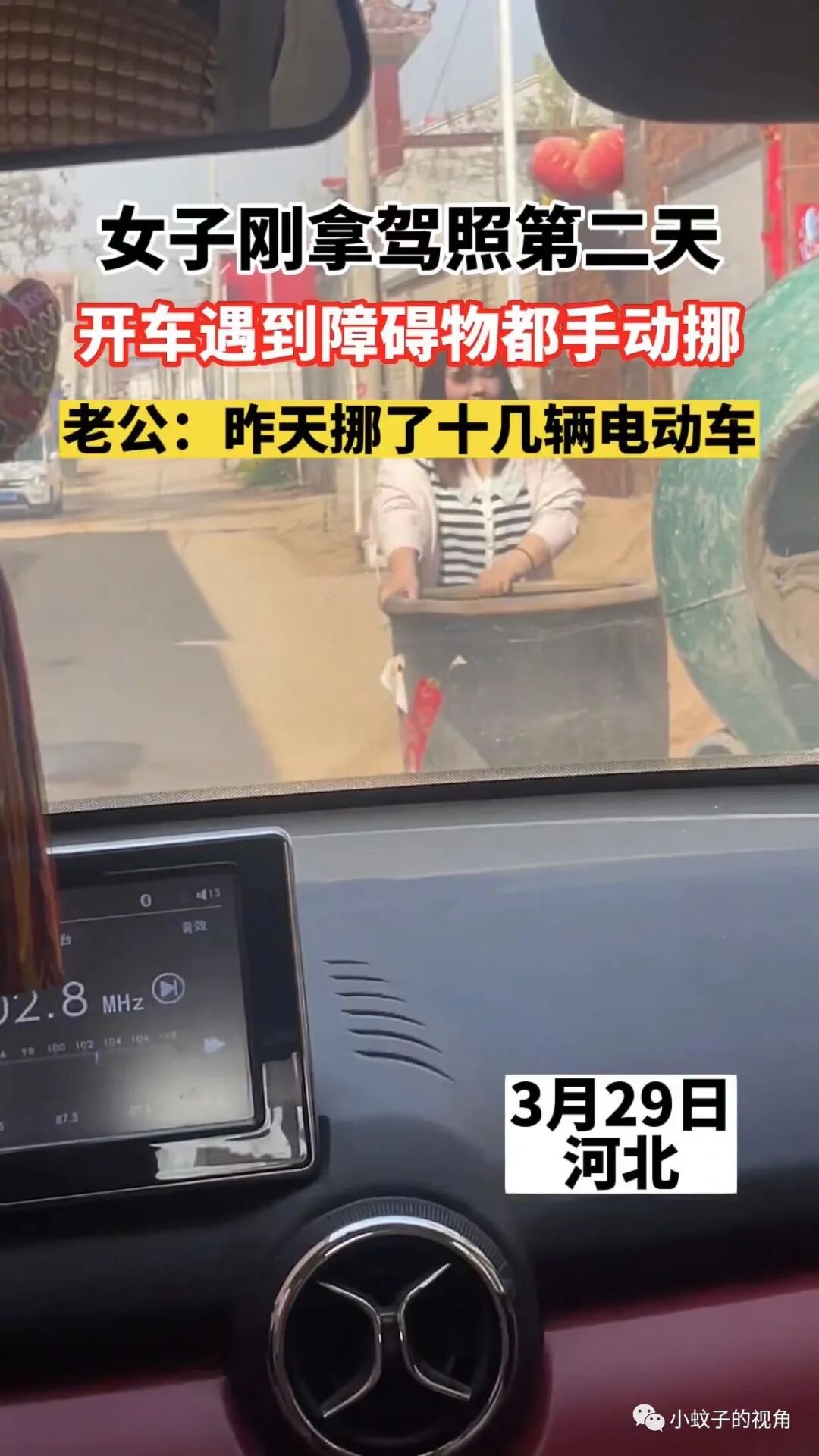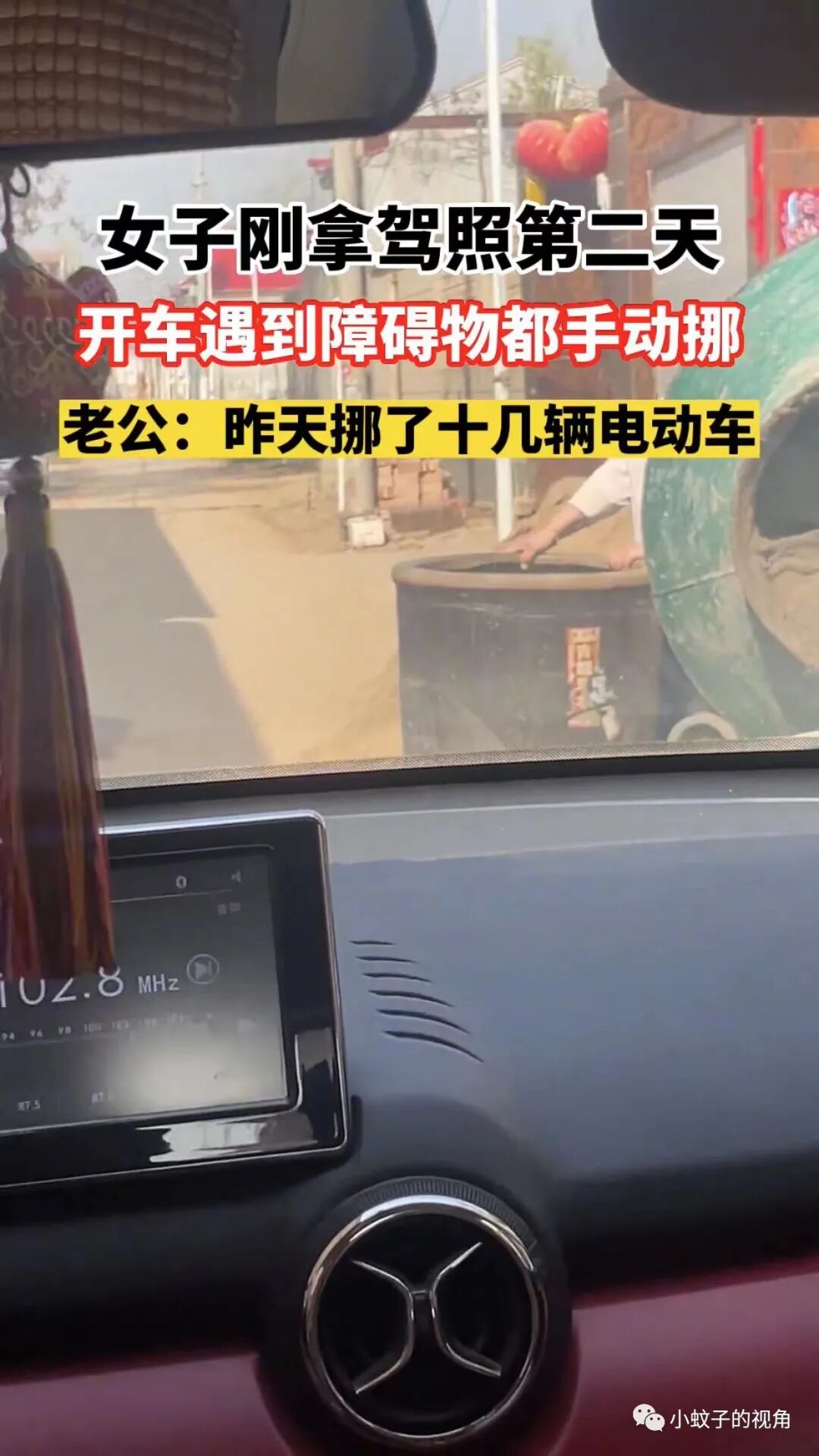 这名女子就是如此!她开车上路,遇到障碍物全靠手动挪开!老公无奈:昨天她就挪了十几辆电动车。