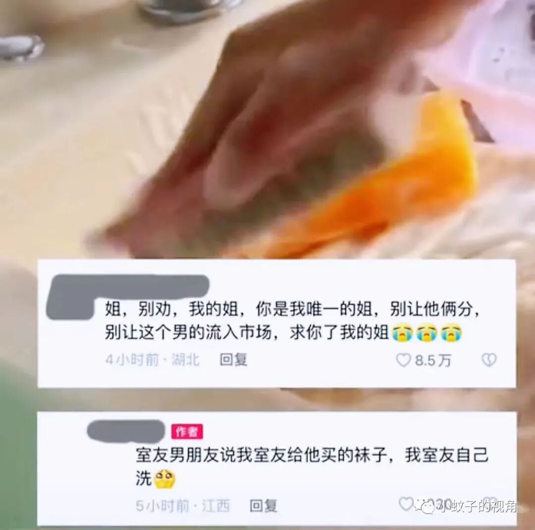 女生却说,男朋友说了,这些袜子都是女生买给他的,当然要女朋友来洗了!