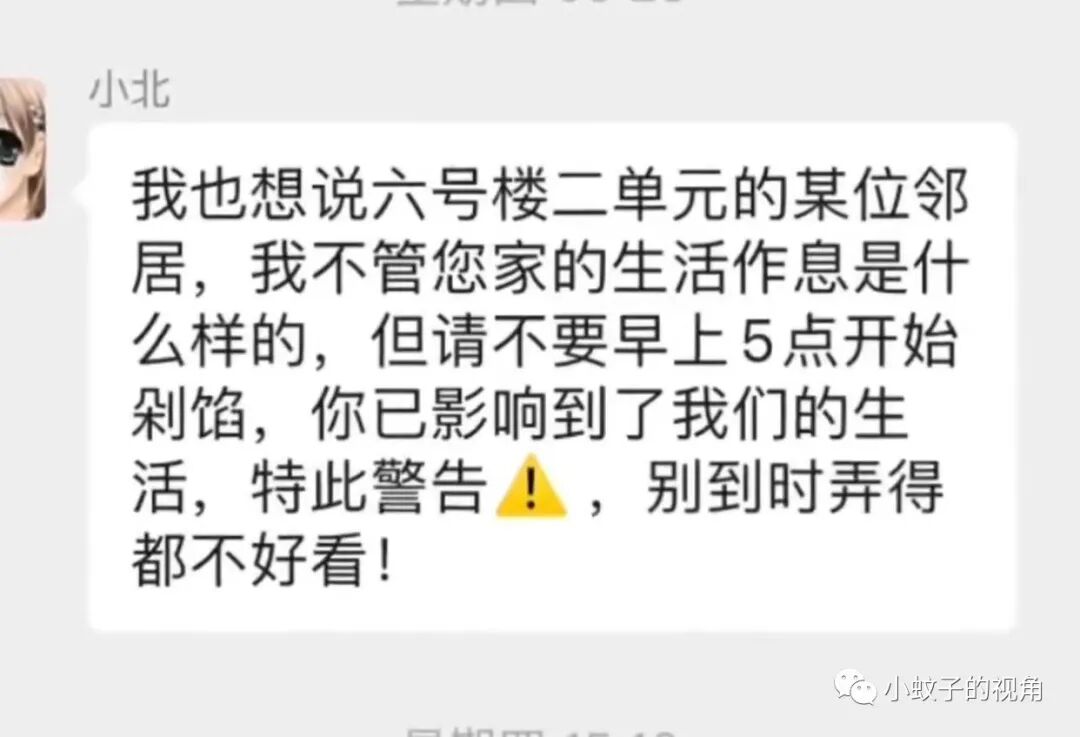 就像这位业主一样,他在业主群投诉邻居扰民:不要大清早五点就开始剁馅!没想到,看到结局后他懵了。