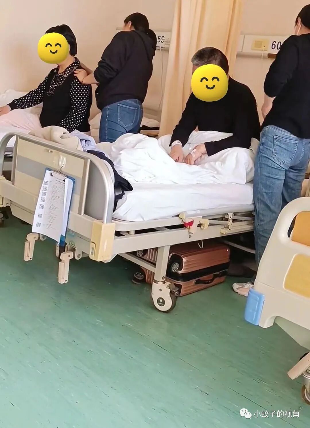 这对夫妻就是如此,两个人一起生病住进了医院。儿子忙着工作没时间照顾,两位儿媳一起来到医院。