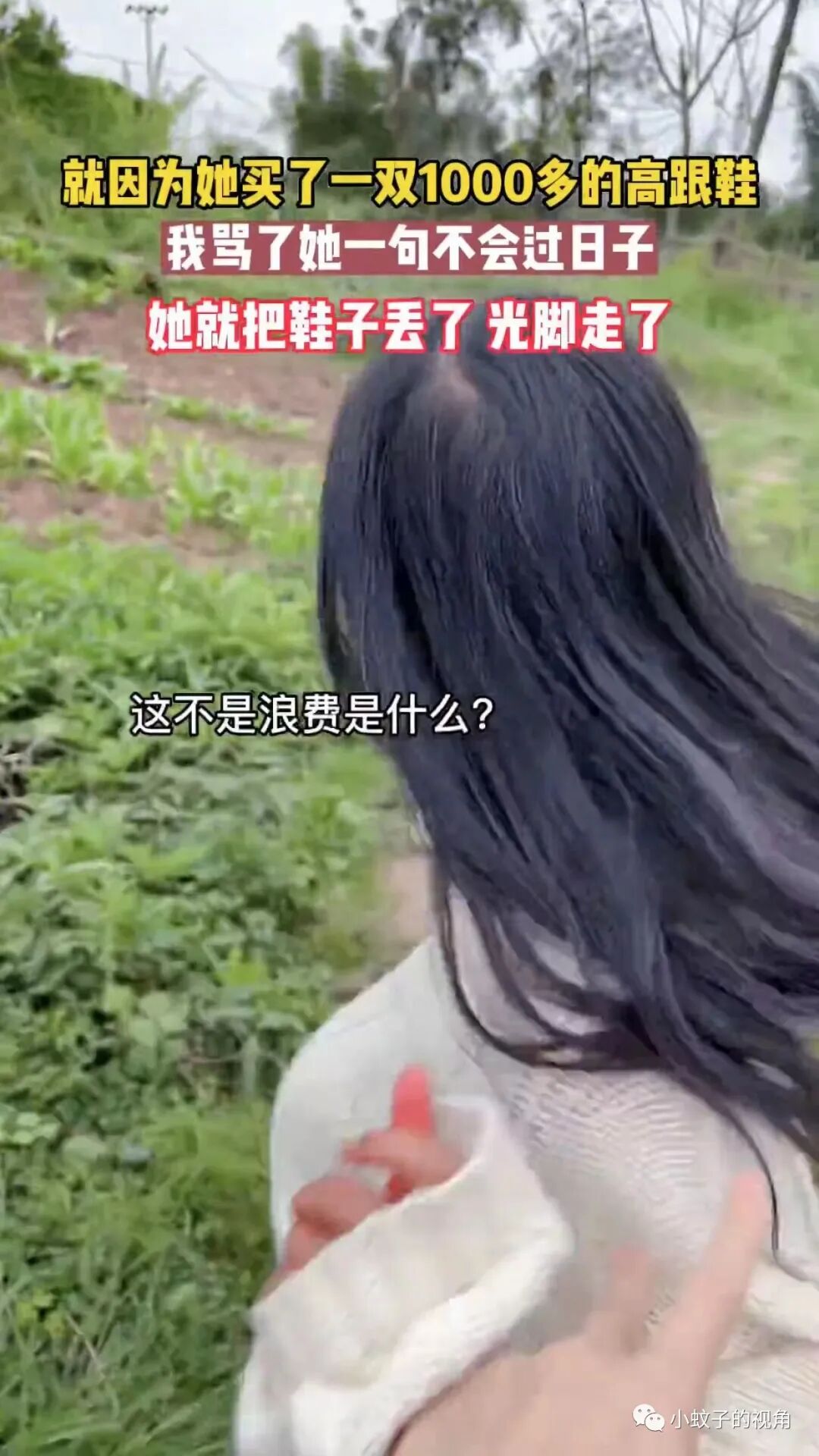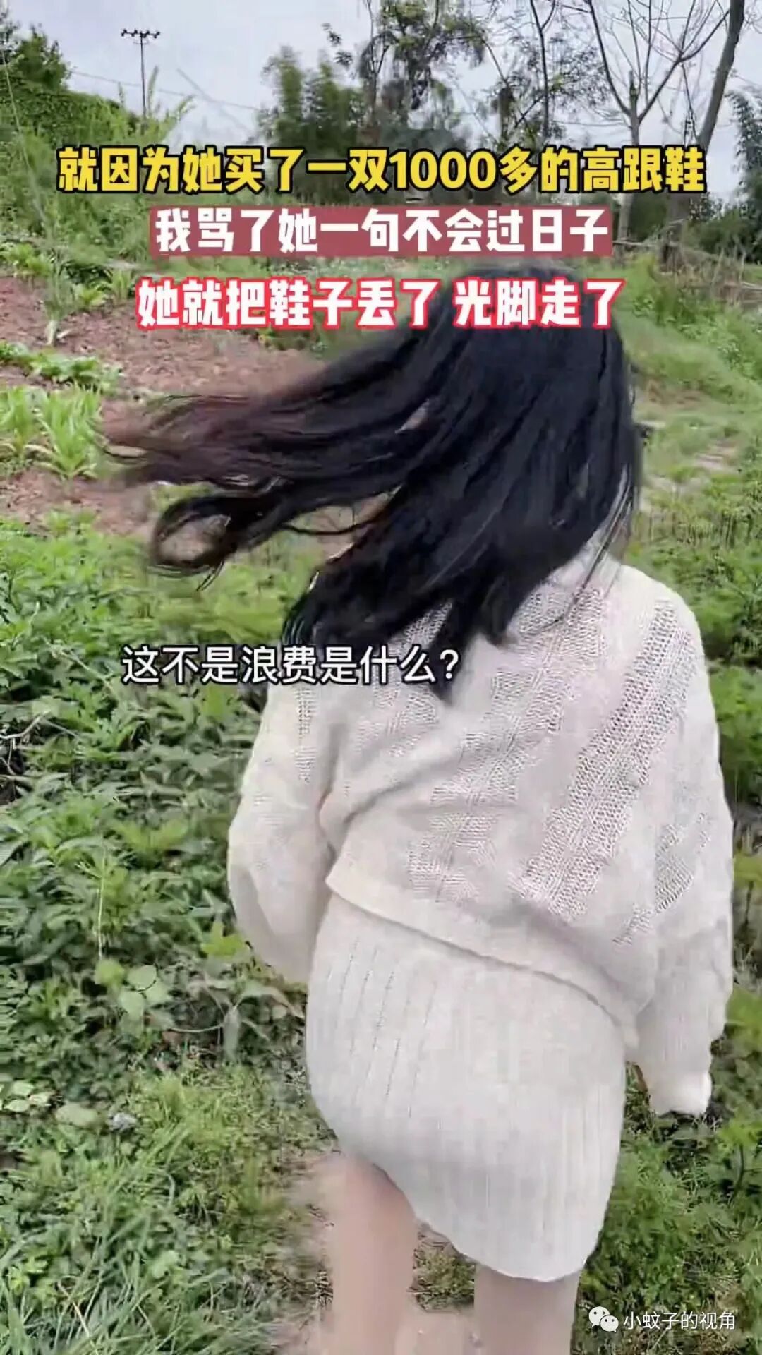 就像这对夫妻一样,女子看上一双高跟鞋,却只因老公一句话,她生气光着脚就跑了。老公无奈地表示:那双鞋1000多块钱。