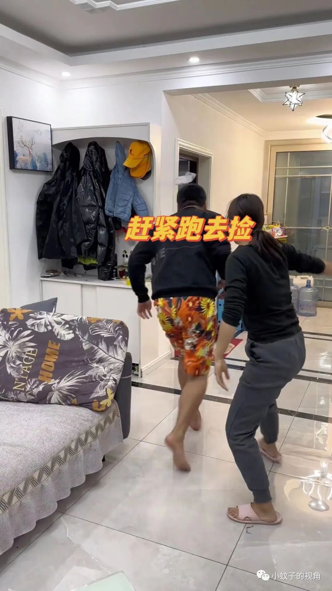老公猝不及防地向前奔了两步,因为房门打开着,他直接就从房门窜了出去!