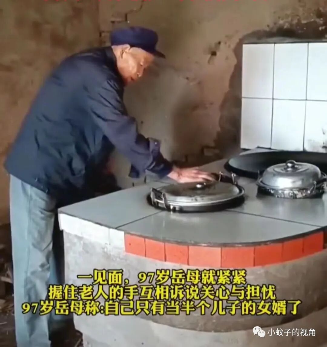 两位老人执手互诉衷肠,到了饭点女婿还不忘给丈母娘做顿饭,吃完饭再收拾好碗筷,擦干净灶台。