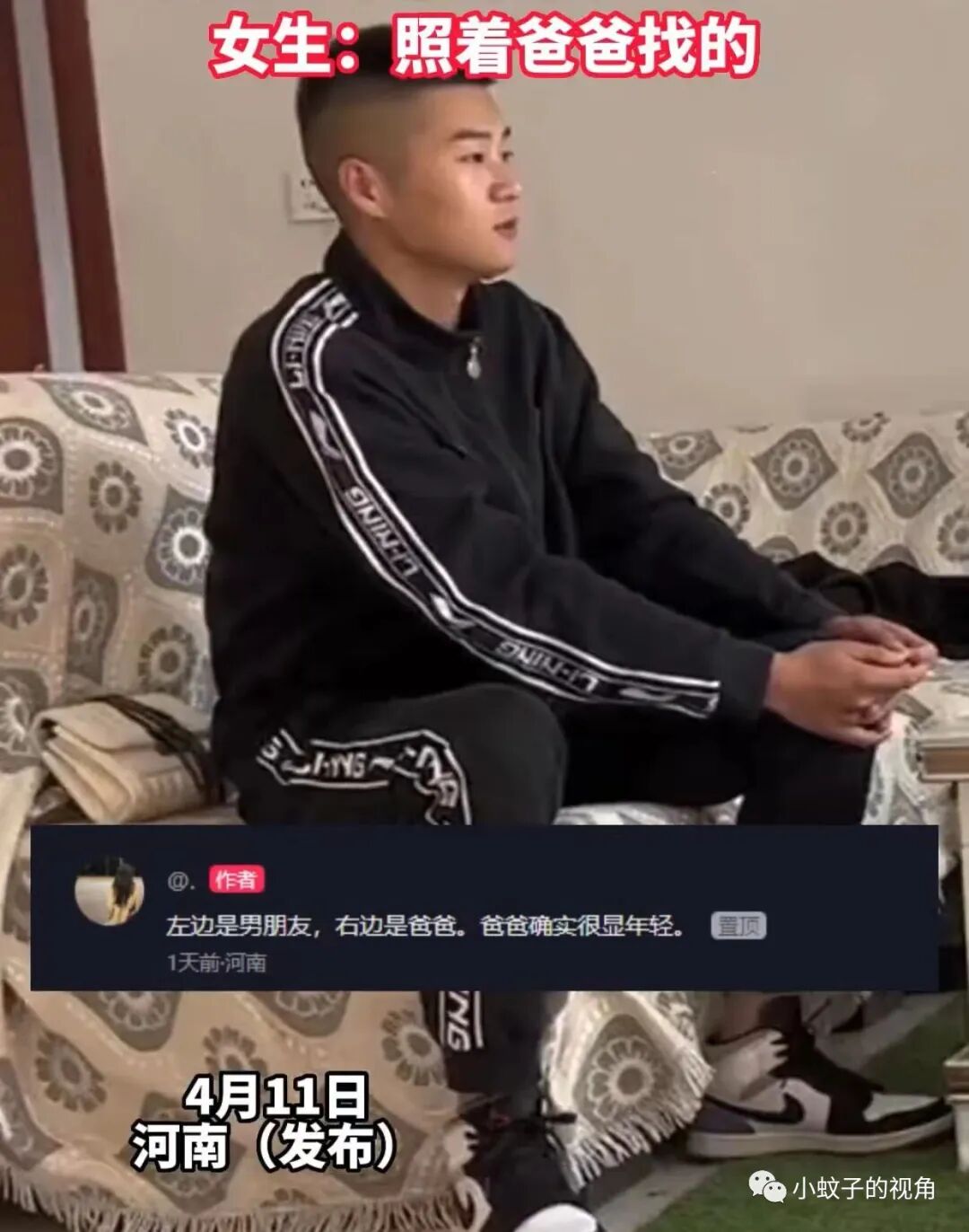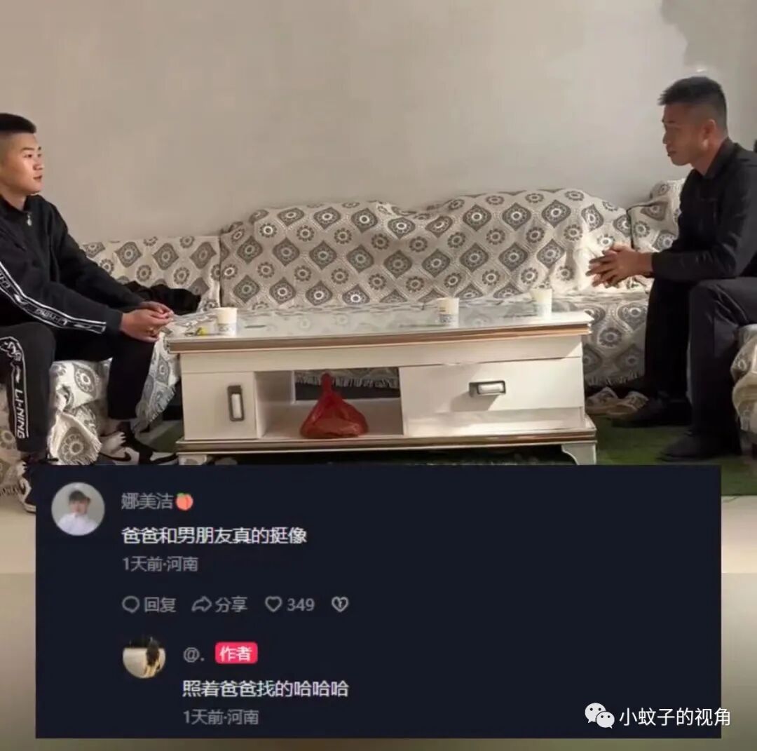 也有网友说:我是按照板鞋和皮鞋来区分的。年轻人都喜欢板鞋,所以左边那个应该是男朋友,但是父亲真的好年轻!