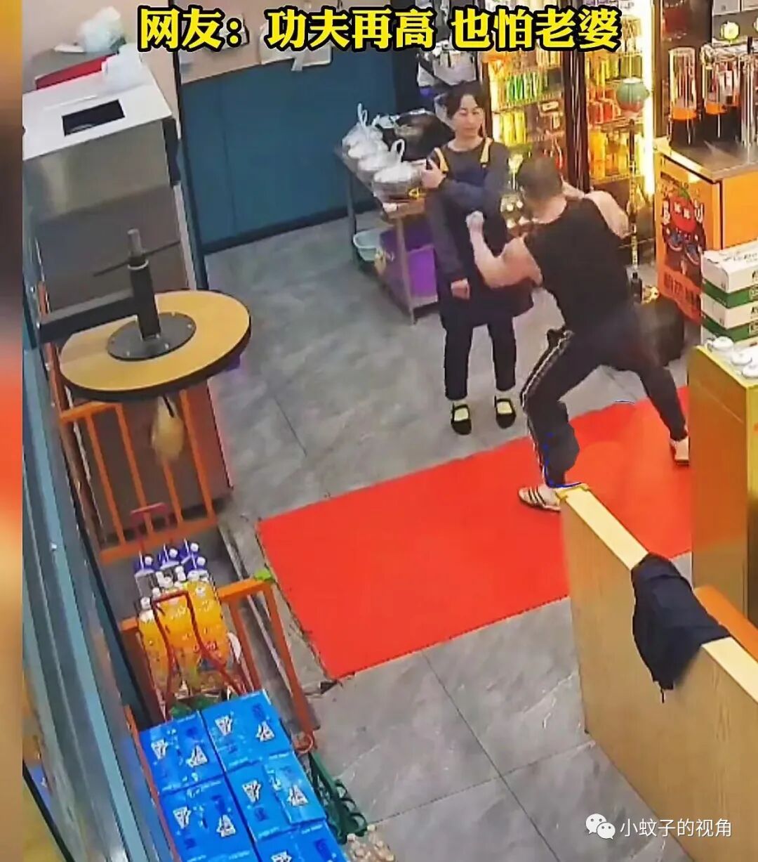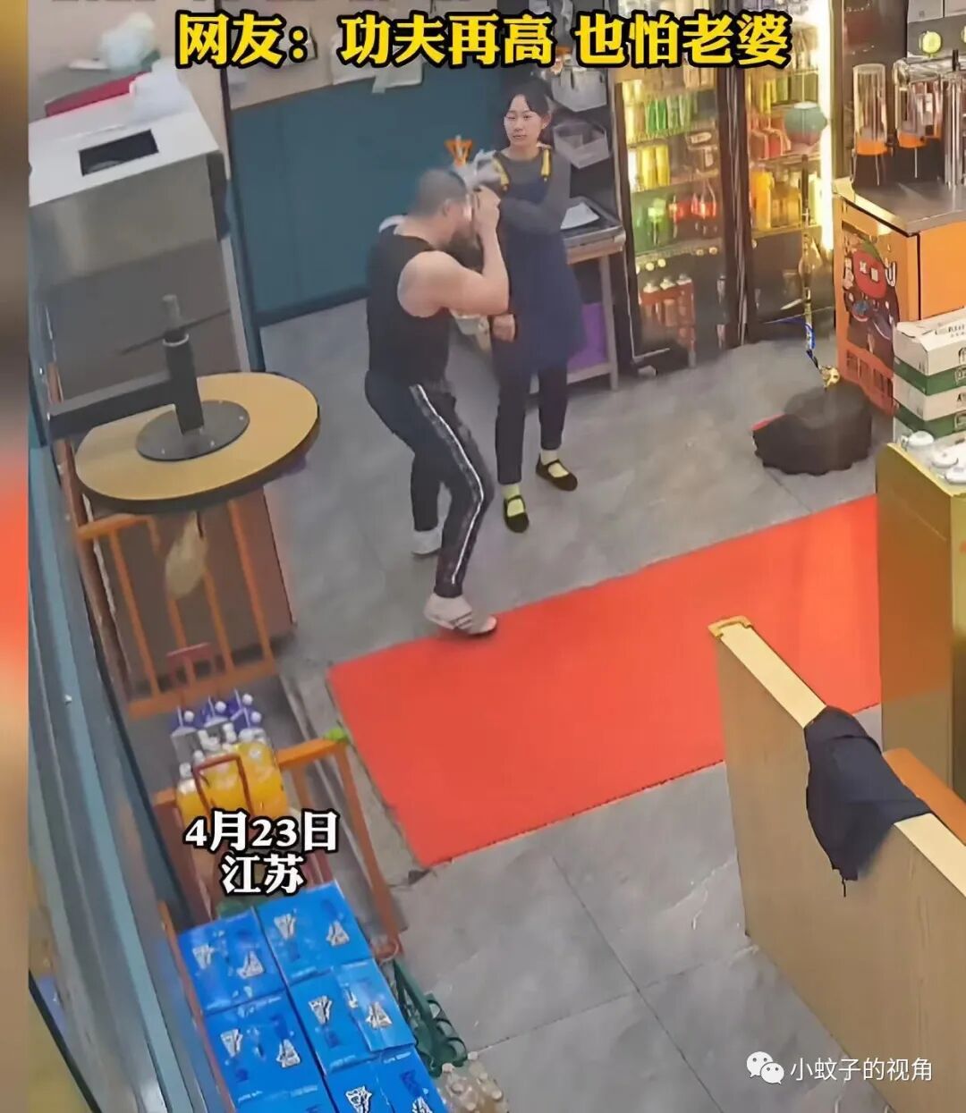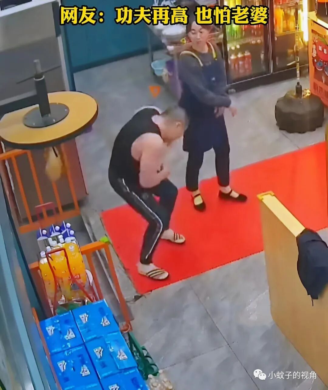 就像这位男子一样,他正在店里练拳,看到老婆进来,对着老婆一顿输出,态度之嚣张令人侧目,没想到,下一秒却被老婆一招制敌!