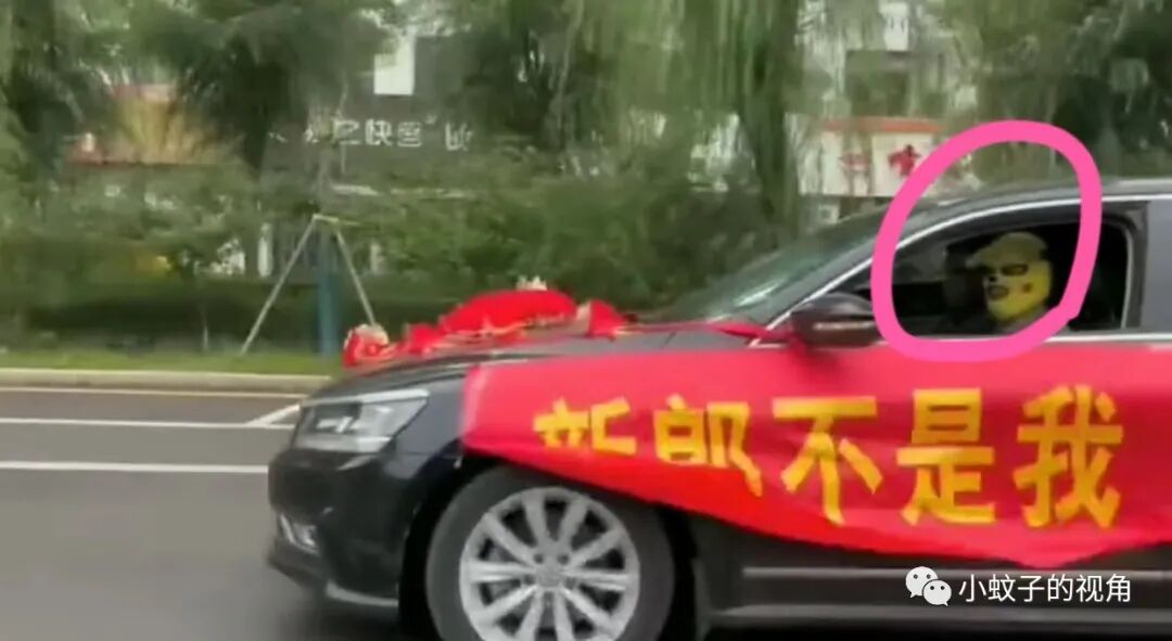 就像这位男子一样,前女友结婚,他带着头套开着车,车上挂着横幅前去示威,看了令人疑惑不解,莫非他脑子有毛病?