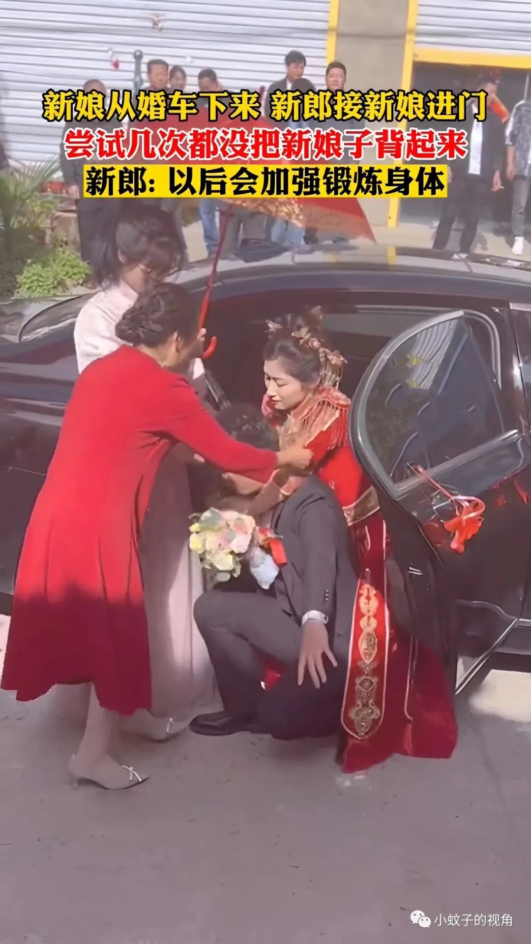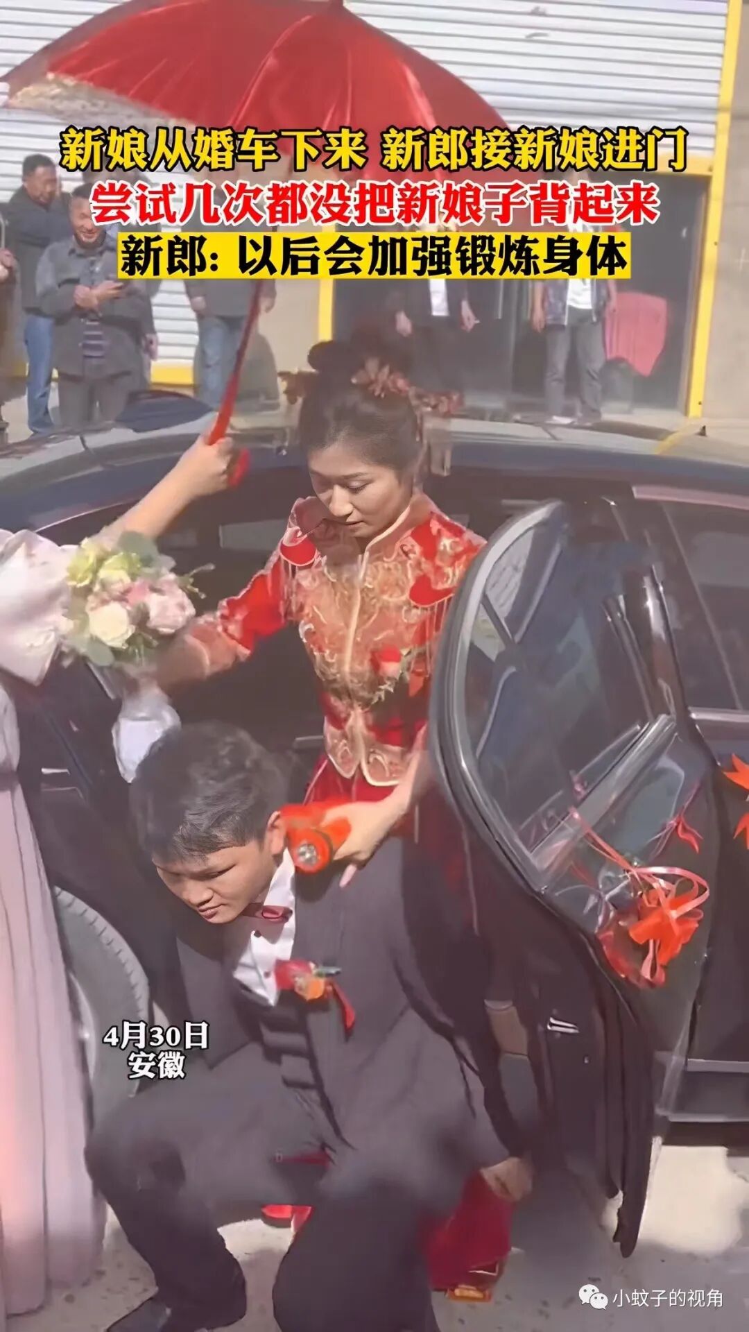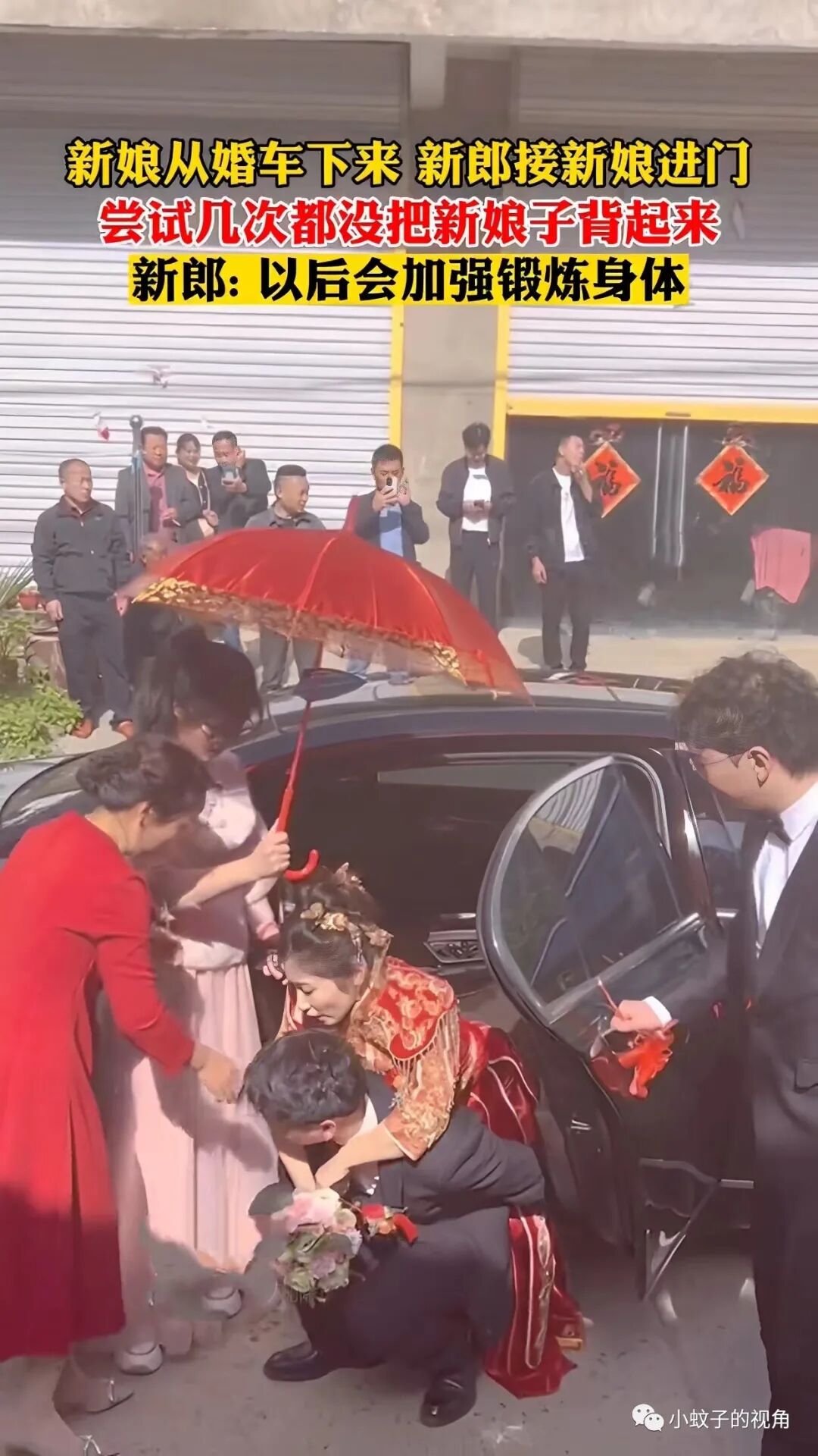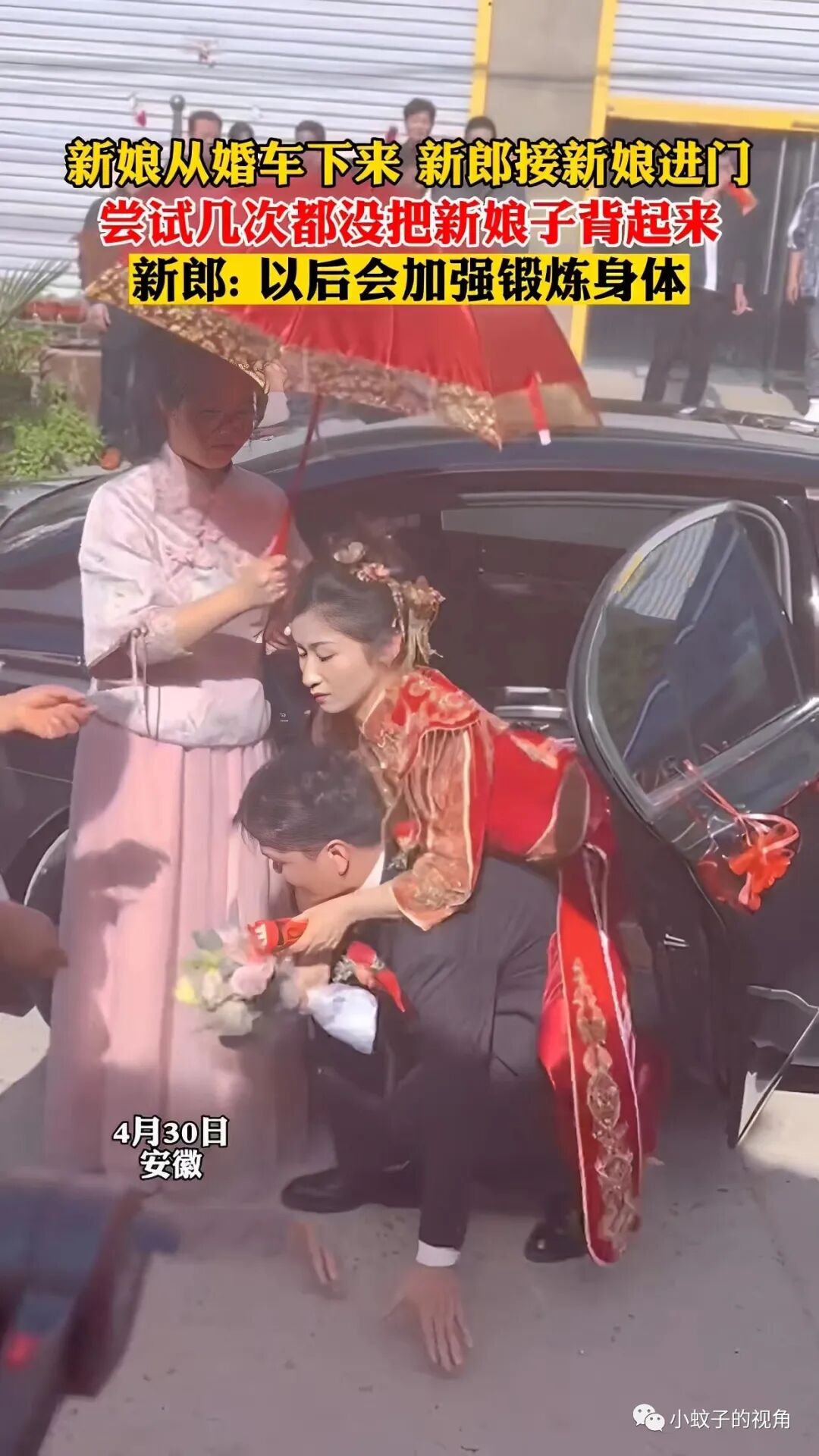 这本来是一个很好的寓意,却没想到新郎根本就背不起新娘!