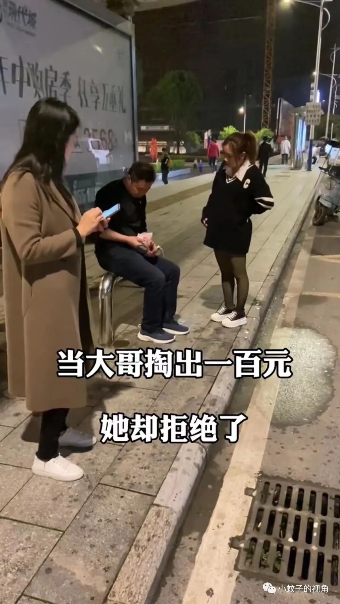 这名女子很显然已经听到了两个人的对话,还没等这名孕妇解释,就从口袋里掏出20块钱递给她。