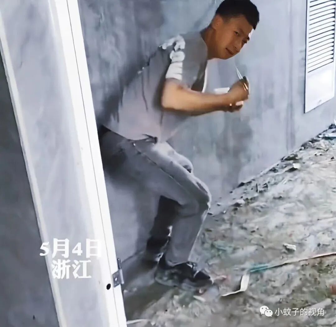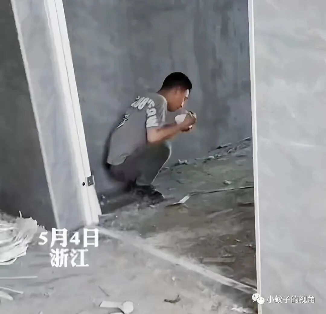 就像这位男子一样,他正在工地上吃饭,妻子突然出现在他面前,看到他手里的伙食,拉着他就要回家。