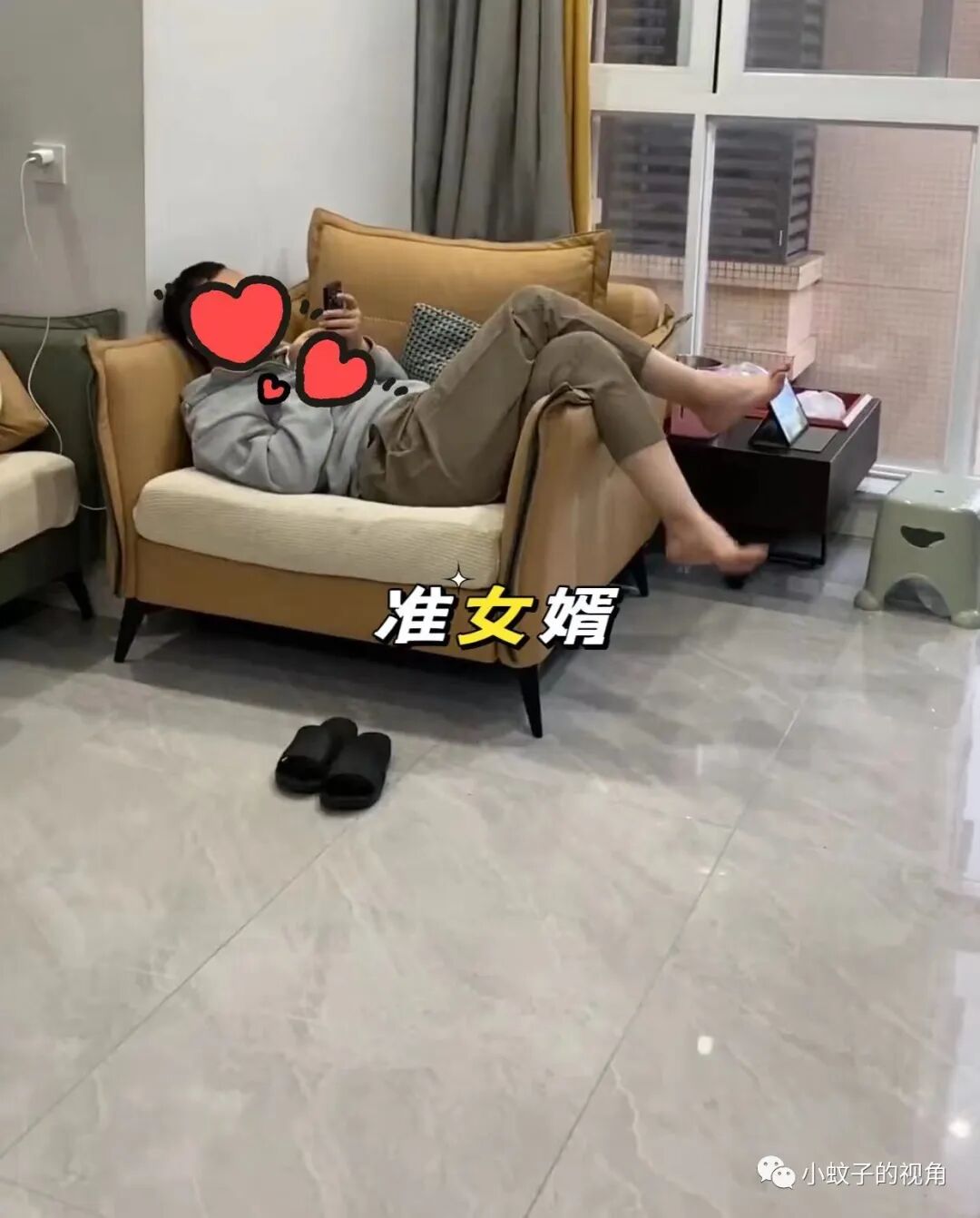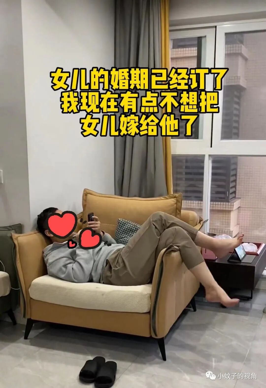 也有网友说:看到他这样的姿势,让我想到了你女儿以后的生活。他躺在这里一动不动,你的女儿就要洗衣、做饭、打扫卫生,说不定身边还要跟着一个不停哭闹的孩子。而他,依然这样一动不动!
