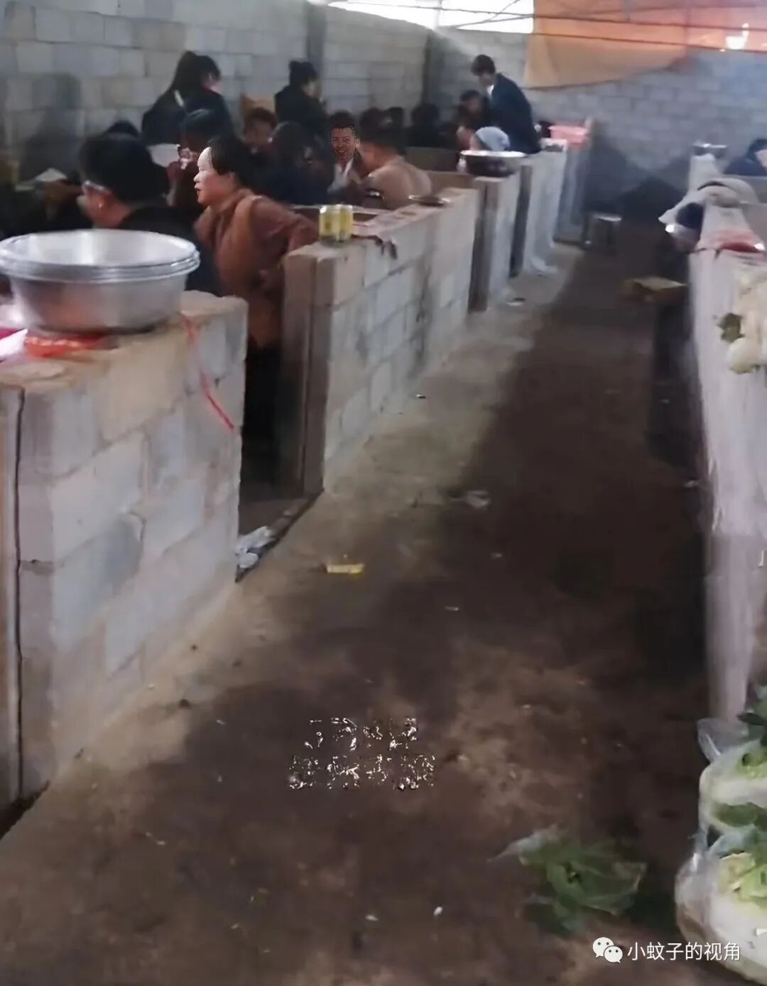 笔者也是第一次见这样的操作。小时候村里举办喜宴也是在家里进行,有时候遇到天气不好,就会在院子里搭个棚子,在“猪圈”吃席的还是第一次见到!