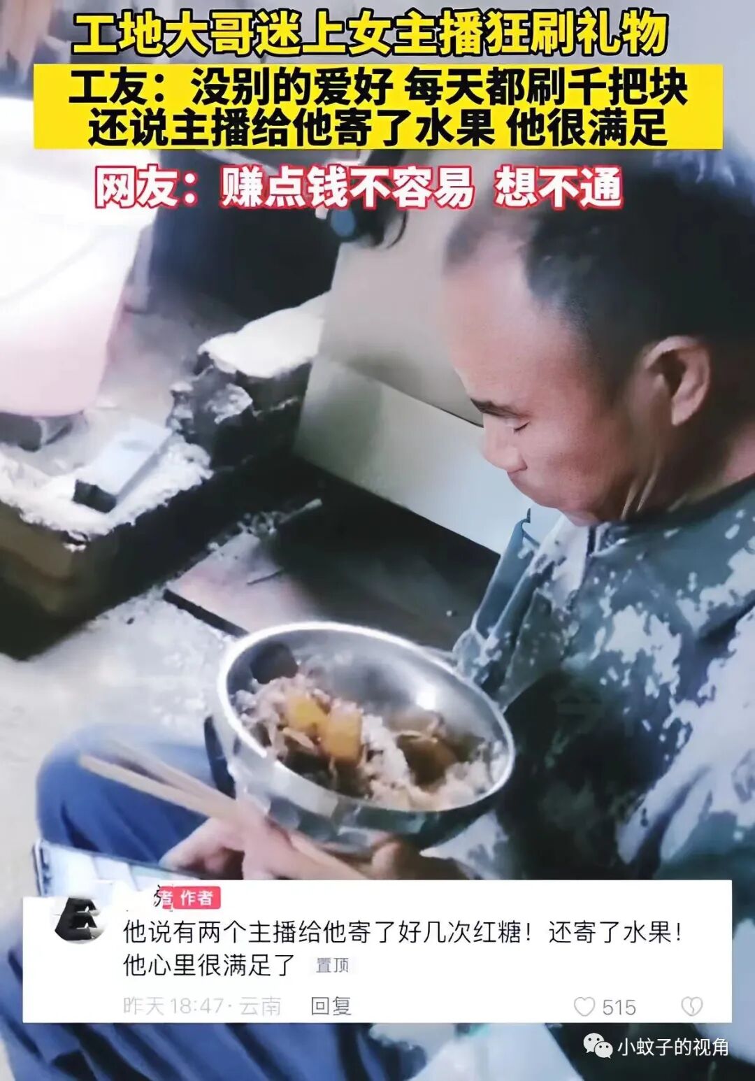 就像这位男子一样,明明生活很苦,却要每天都给女主播刷礼物,谁劝都不听。对此,工友的话堪称人间清醒。