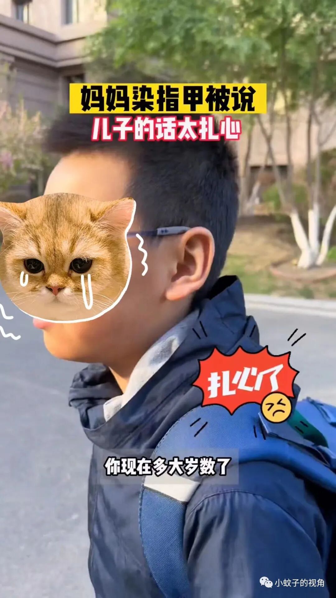 本以为儿子会夸她两句,却没想到男孩看都没看,转身就走。一边走一边吐槽:“不好看,你又不是小姑娘。”
