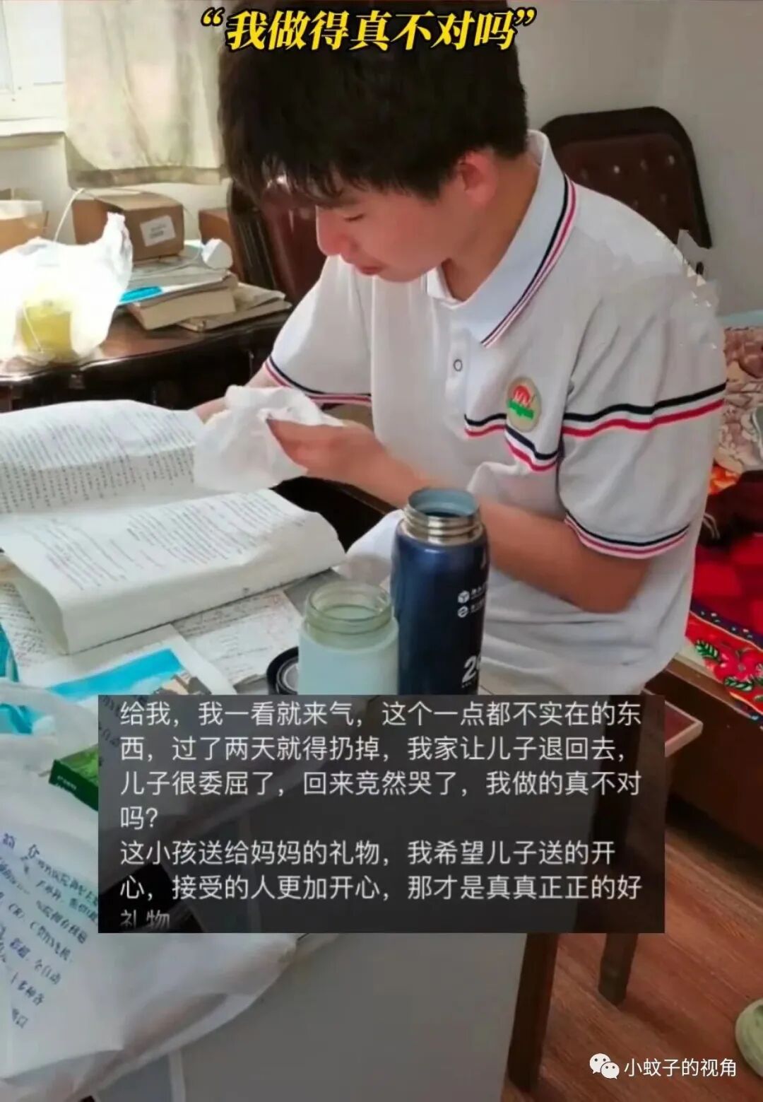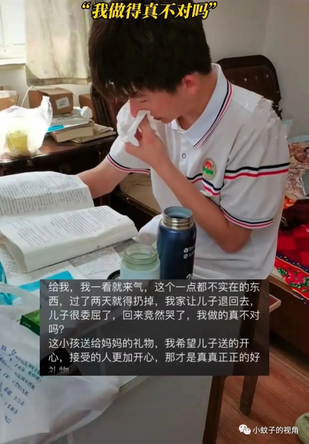 网友却说:晚了!估计你以后再也收不到儿子送的礼物了。你既然知道这是孩子的心意,就不应该这样伤孩子的心。你今天给他的伤,或许他要用一辈子来填补。