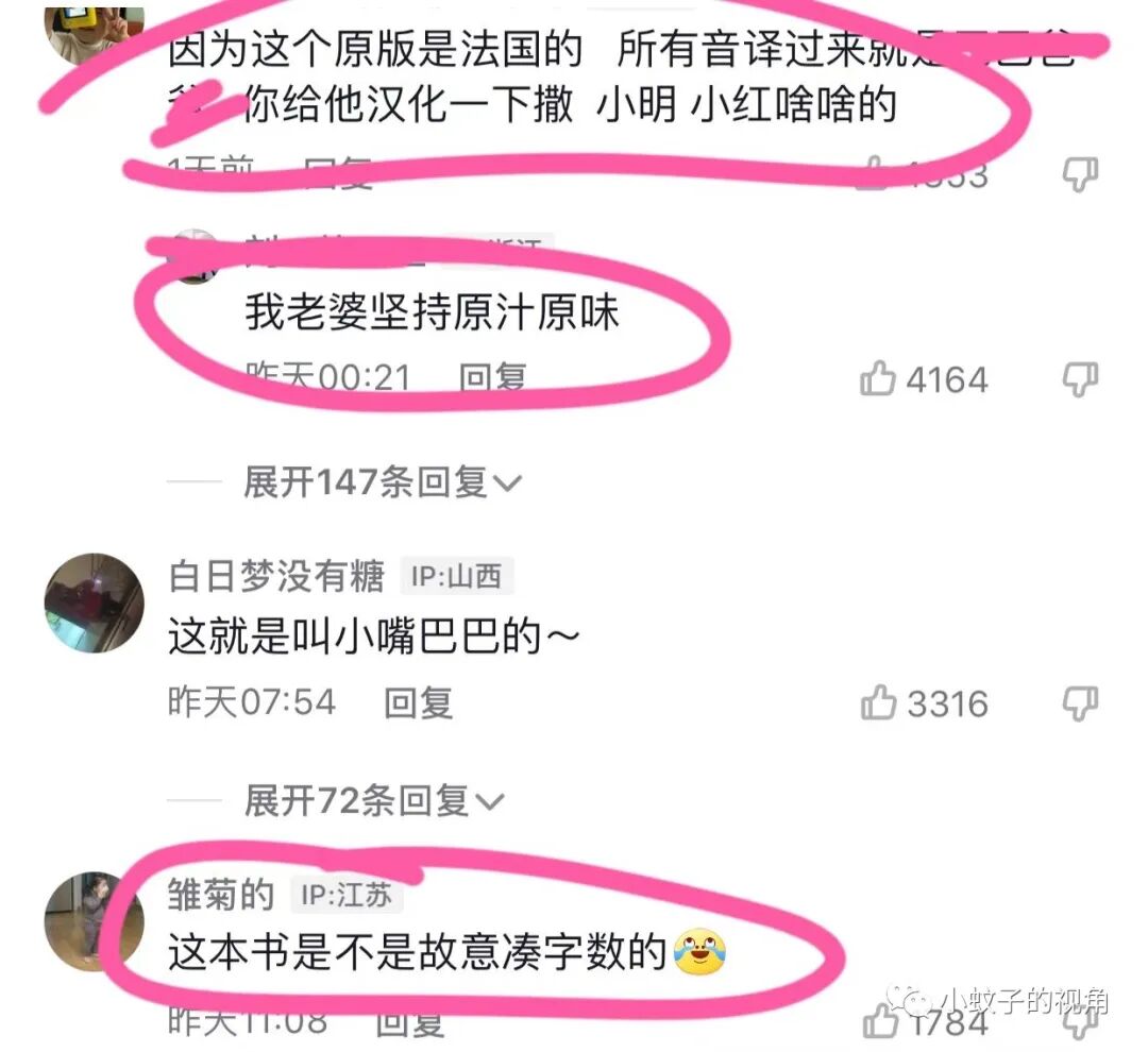 也有网友说:因为这个原版是法国的,所以音译过来就是这样,你给他汉化一下,比如:小明、小红啥的。