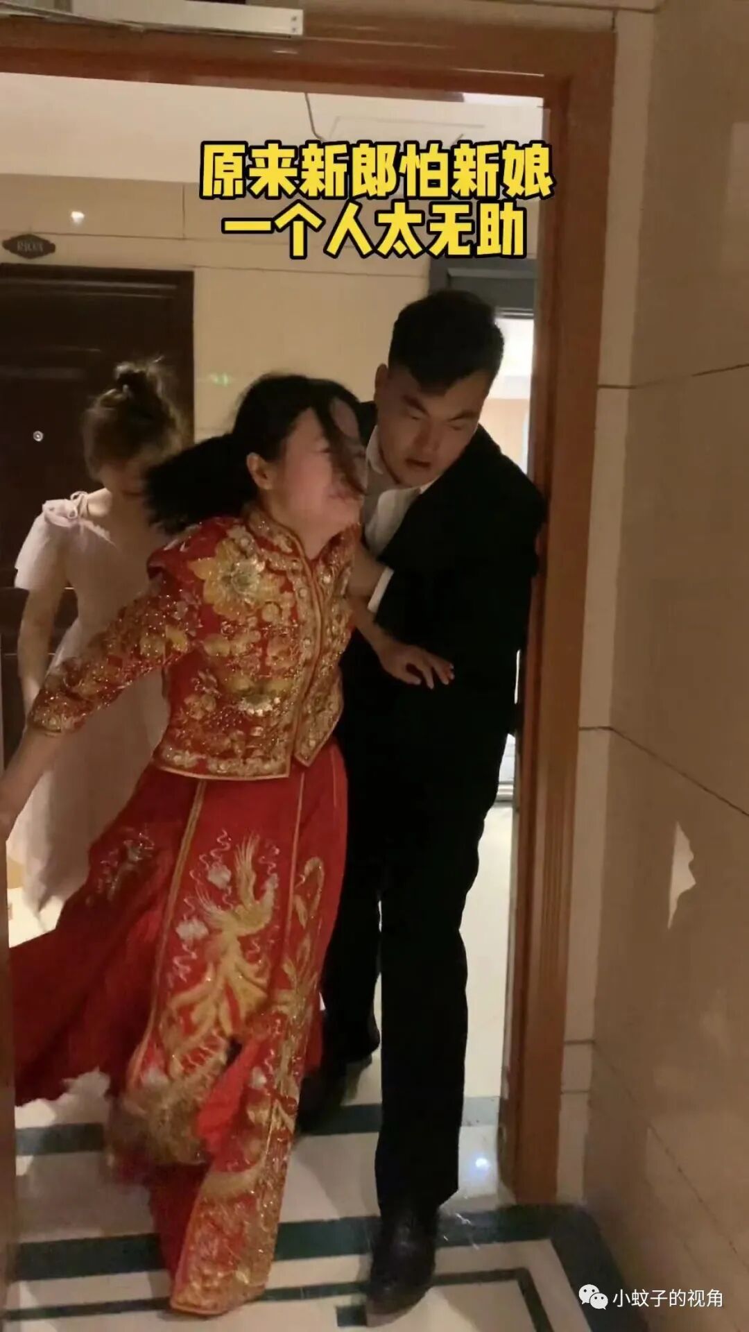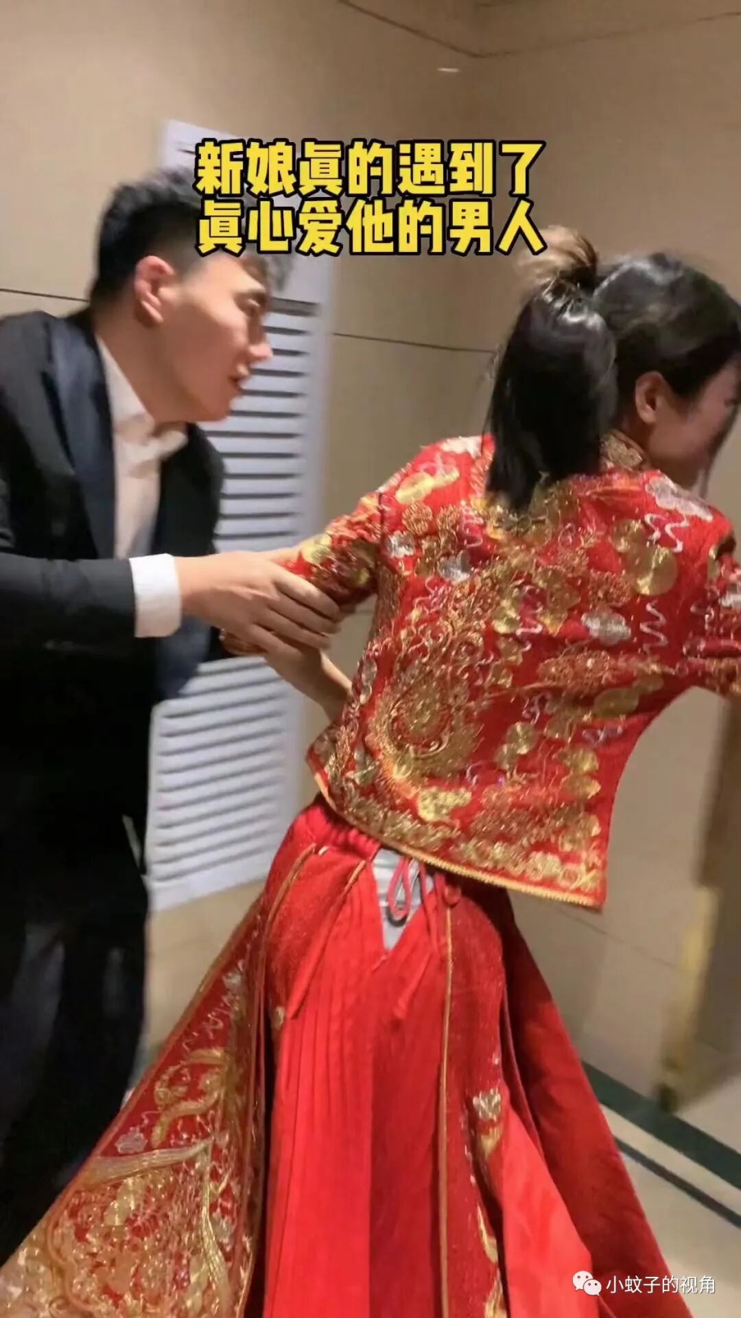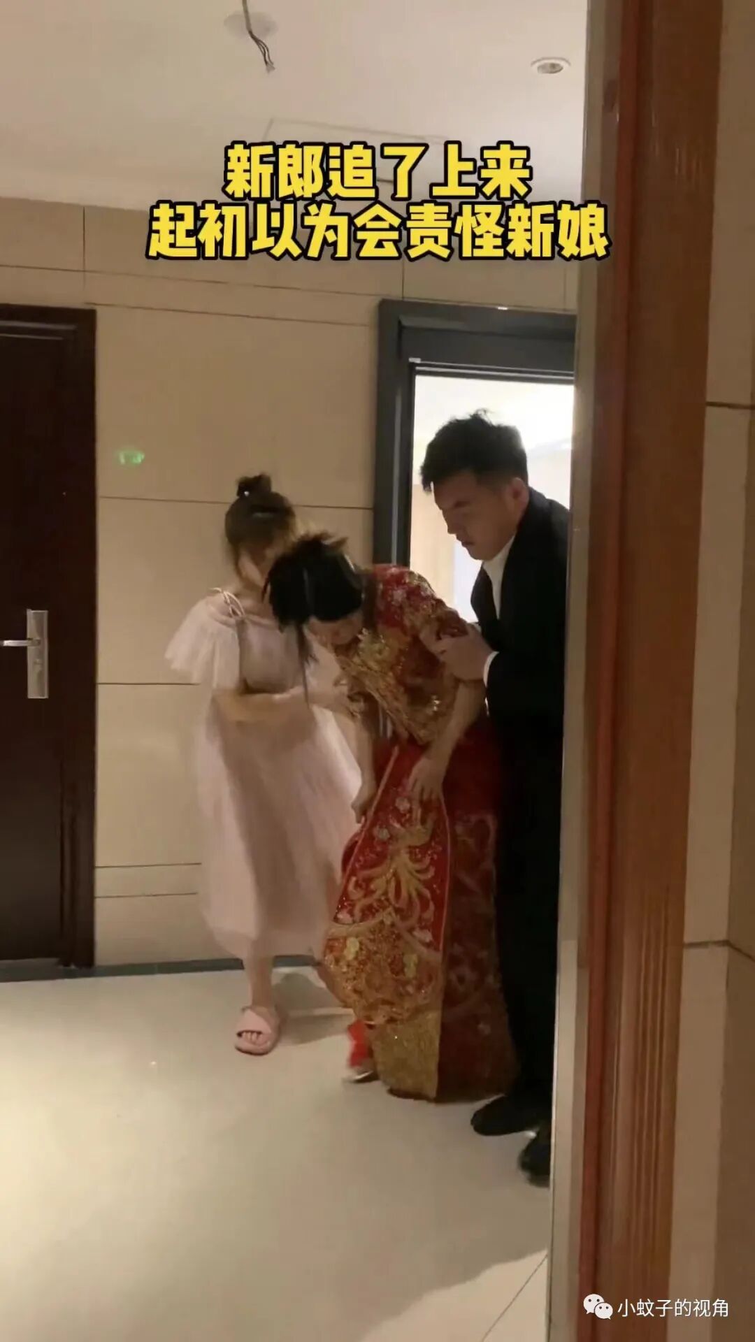 新郎赶紧扶起她,安慰说:别急,我陪你一起去!婚礼不要紧,让他们先开席就行。