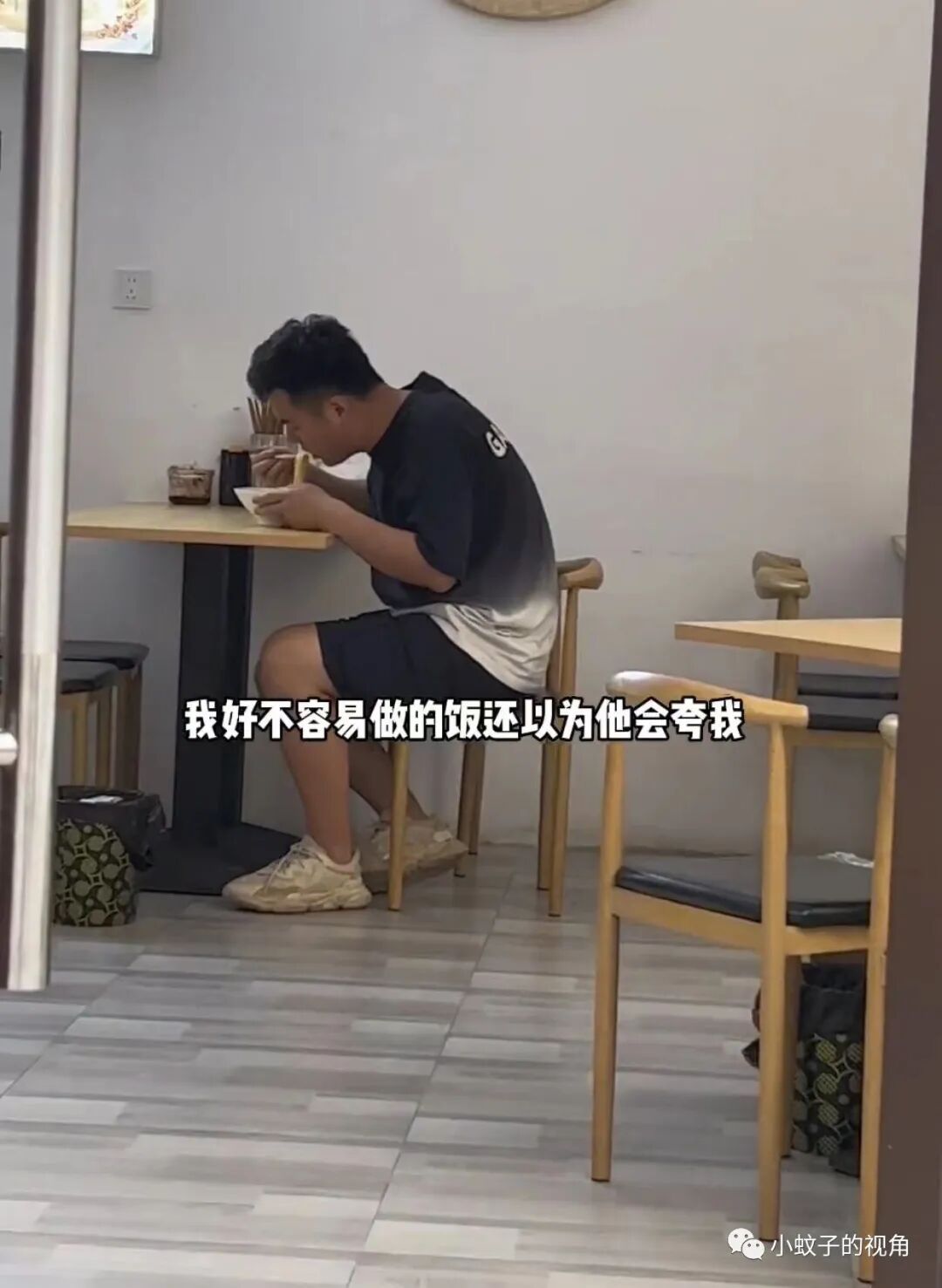 网友说:好好反思一下吧!你做的饭这是有多难吃?才会让一个男人偷偷跑出来吃饭,还得顾及你的面子!