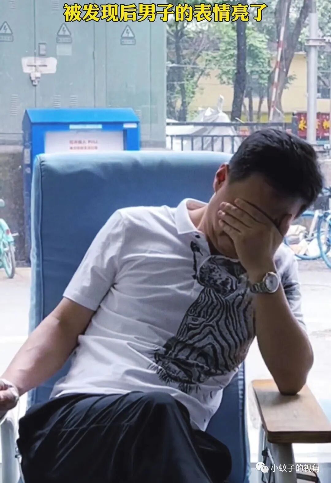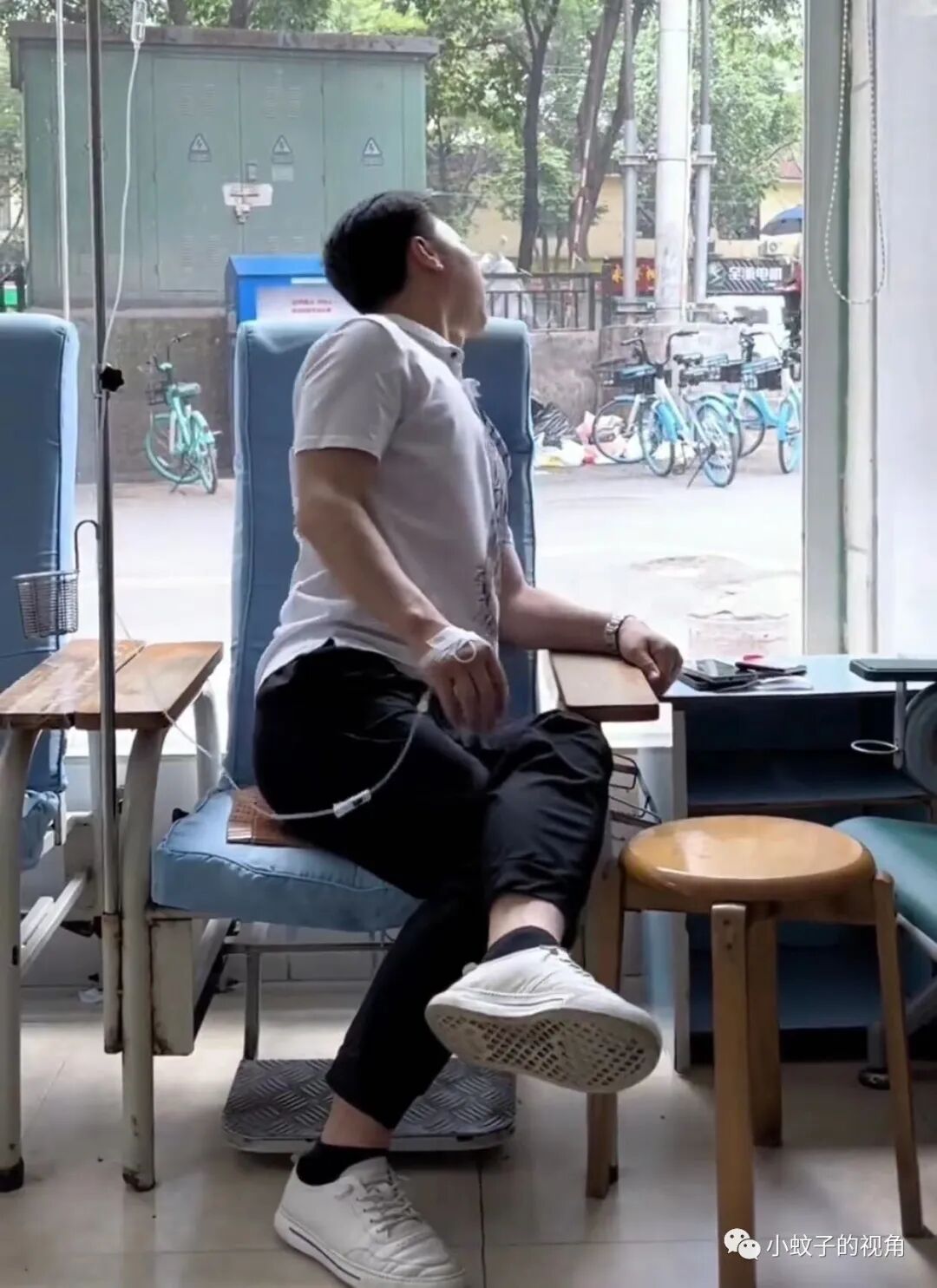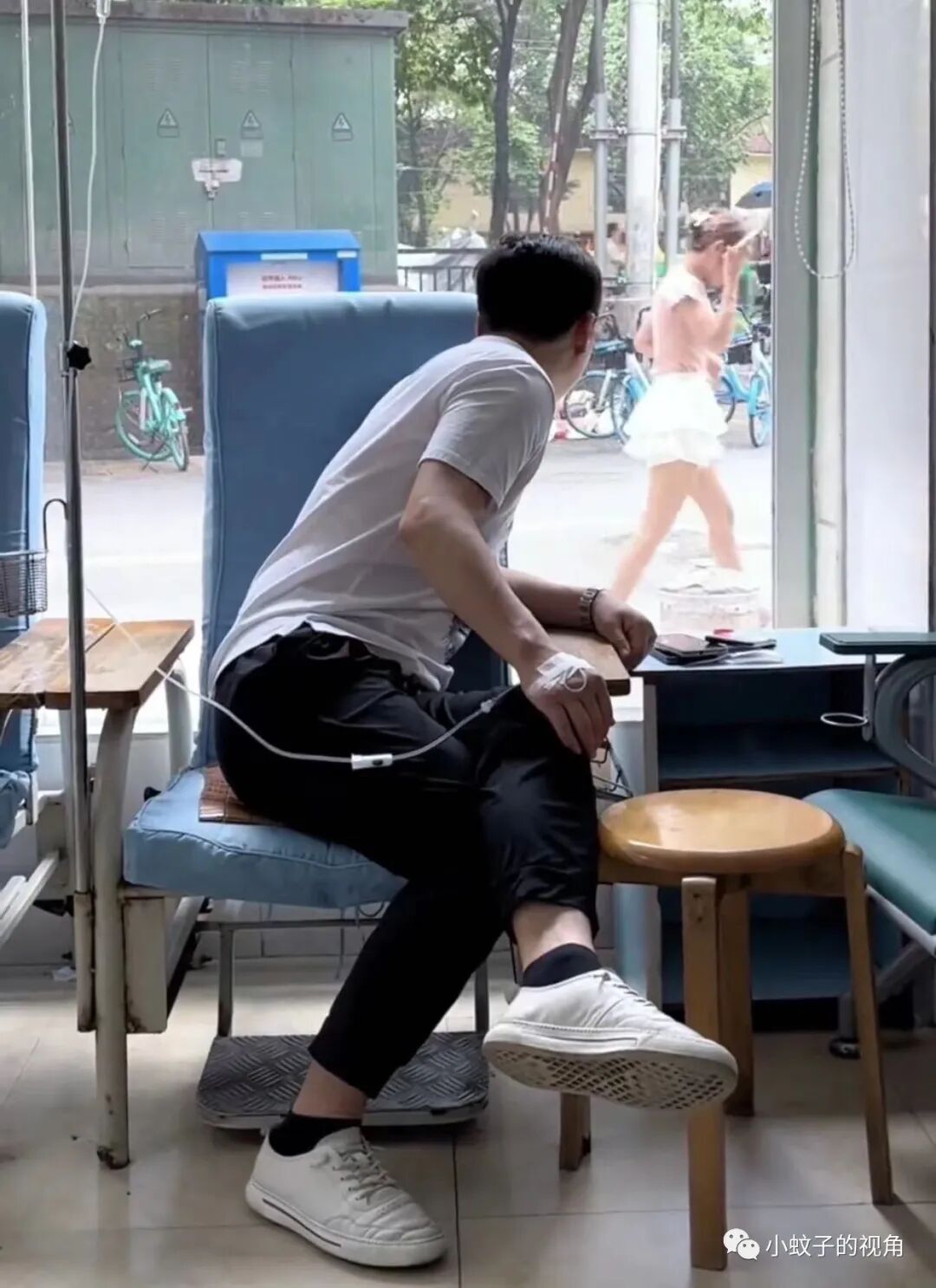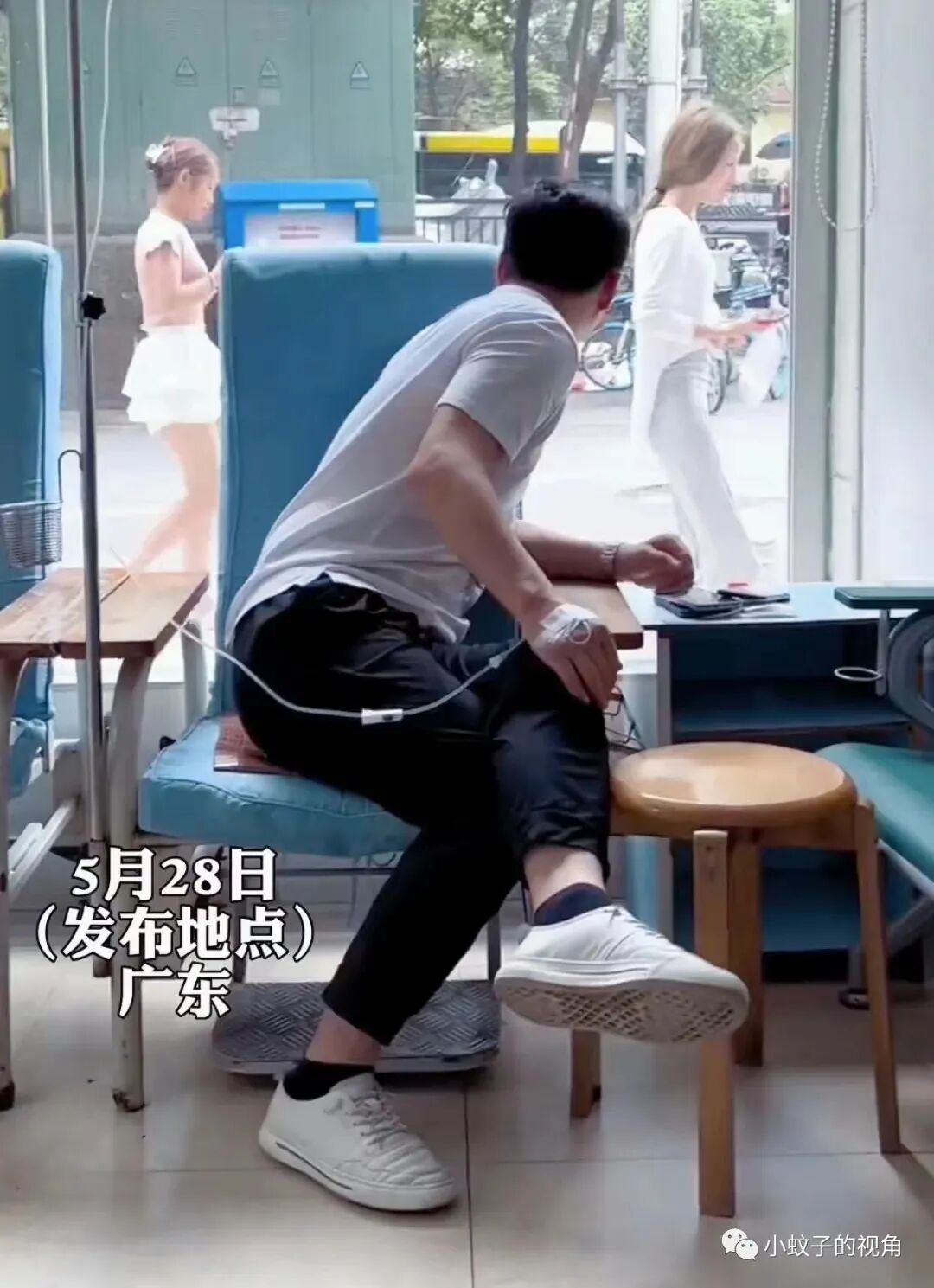 这位男子就是如此,哪怕生病打针都不耽误他偷看美女,被老婆发现后,他的表情亮了。