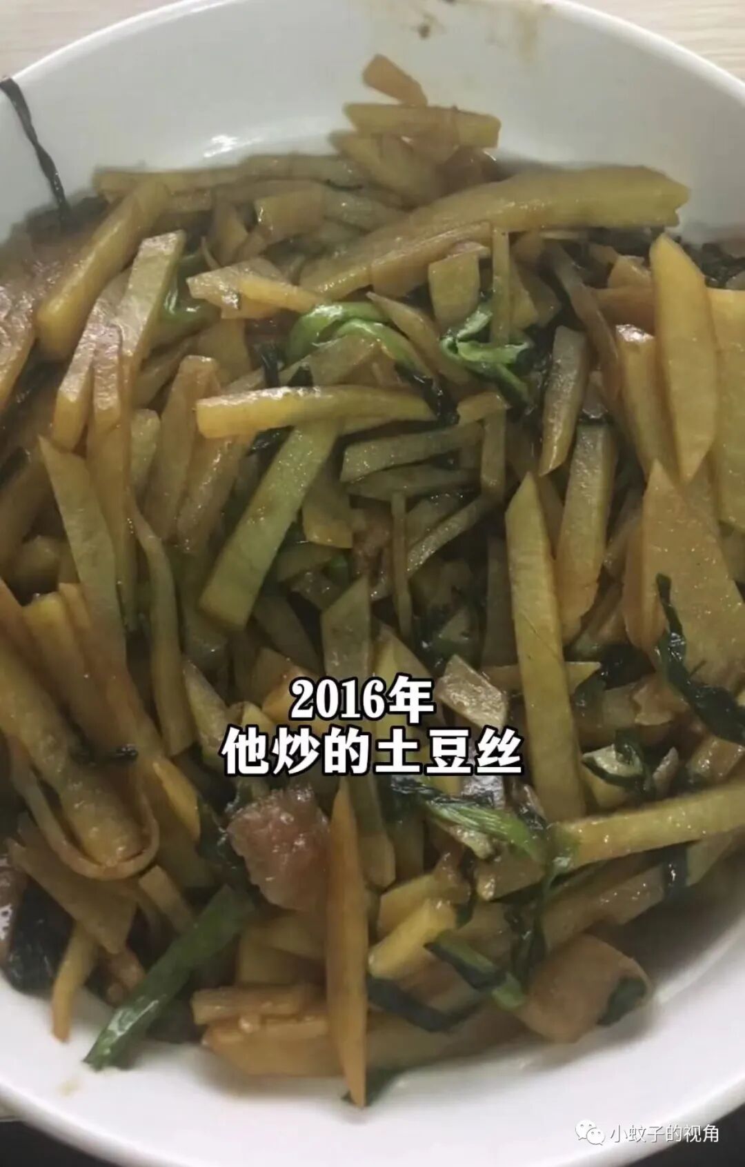 比如,女子晒出他2016年的时候炒的土豆丝,先不说土豆丝的色泽让人有没有胃口,但但是土豆丝的粗细,都让人怀疑人生!