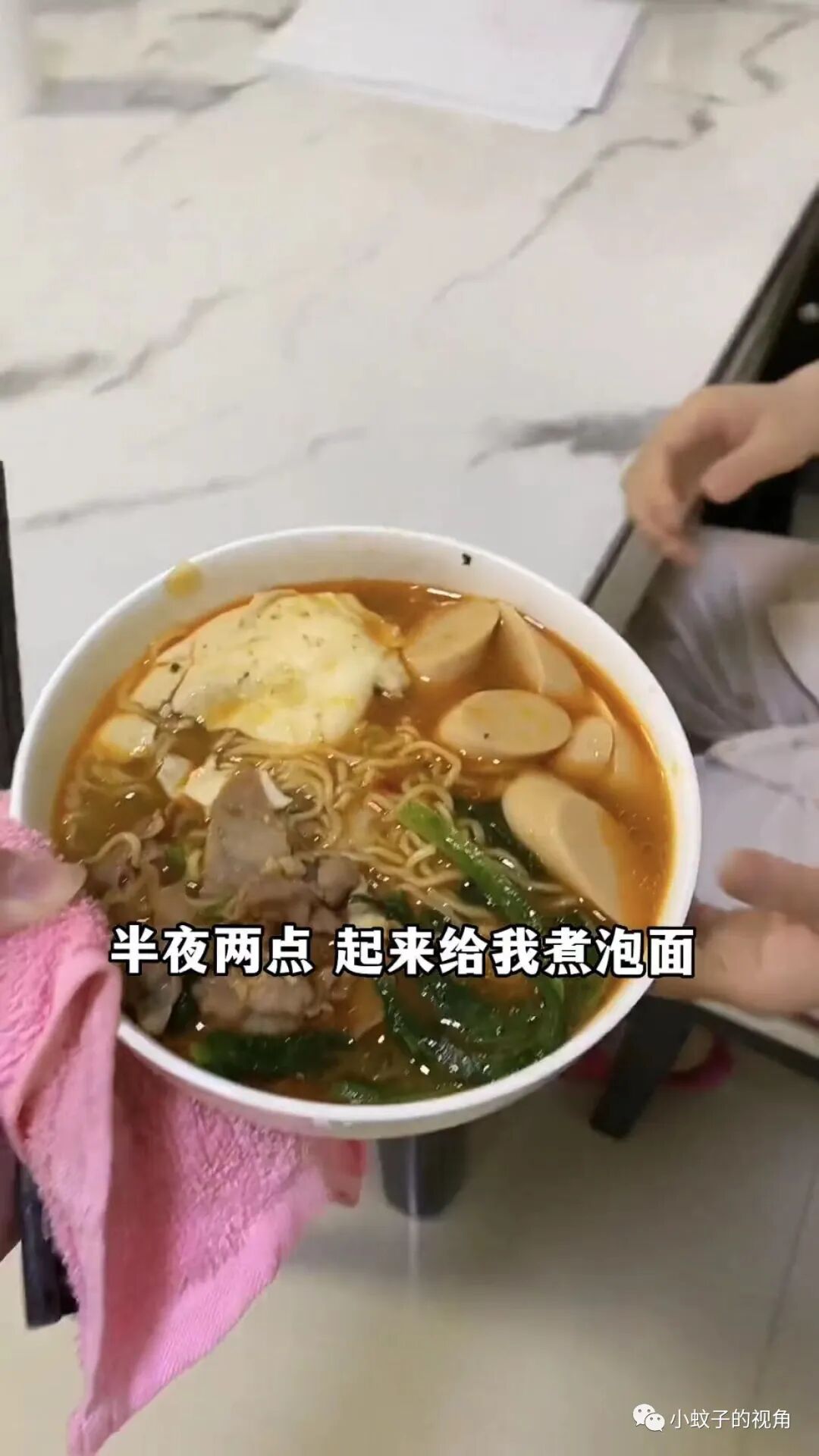 老公慢慢地开始笨手笨脚地学着做饭,从最简单的面条开始,还给怀孕的她做鱼,半夜起来煮泡面,胆战心惊地使用高压锅炖猪蹄。