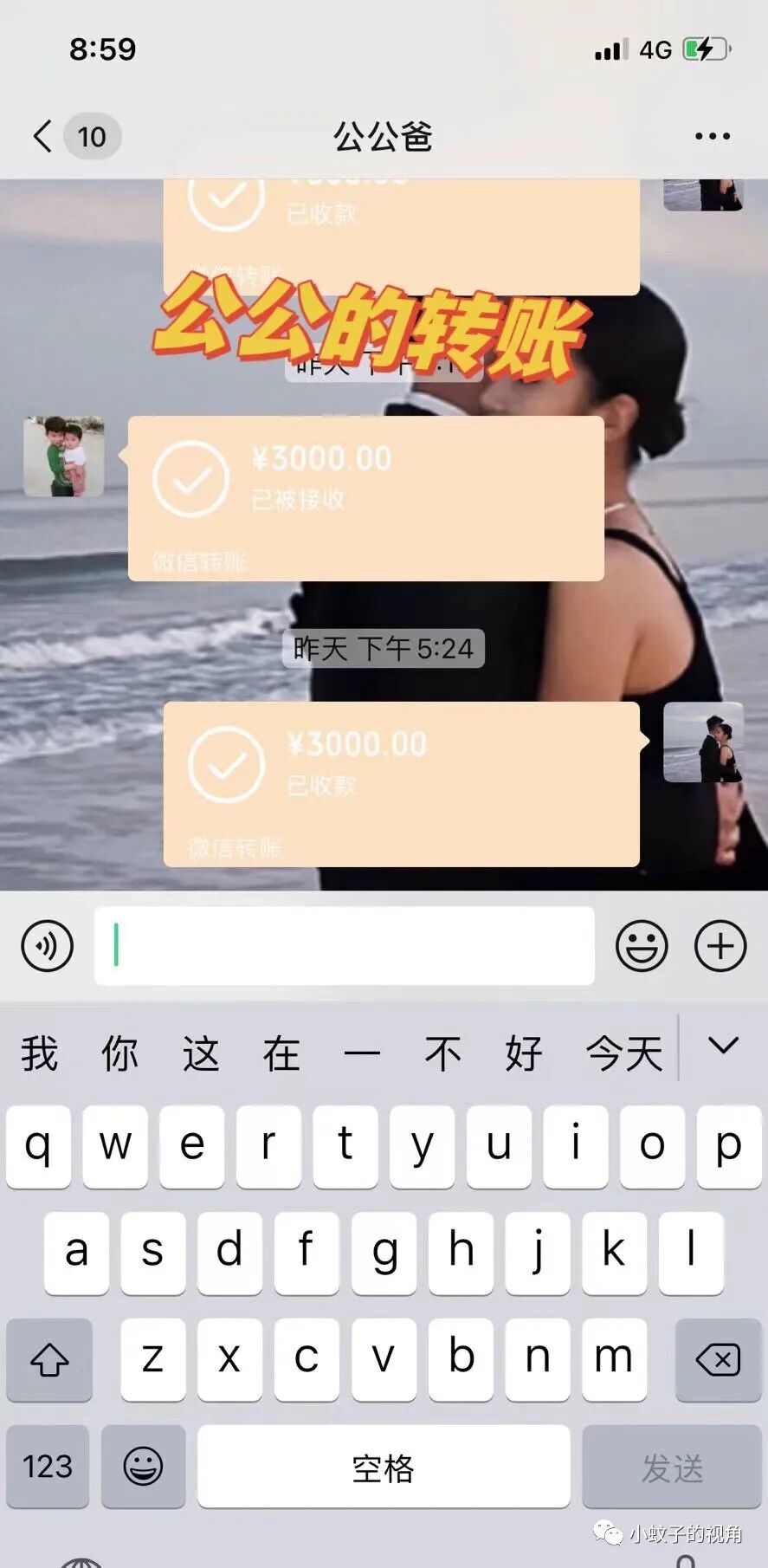 除此之外,公公还给儿媳转账3000块钱,让她自己随便花。