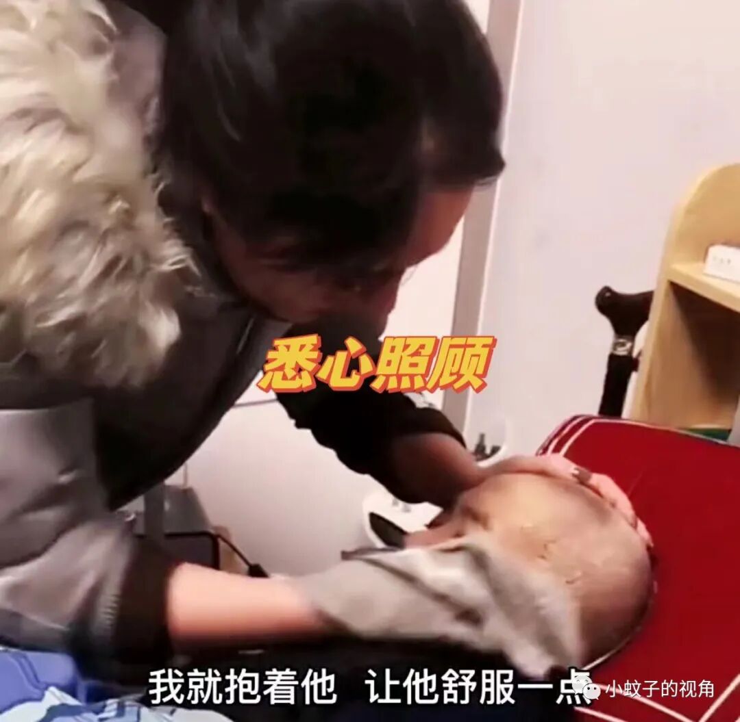 女子平时一直在父亲身边尽孝,喂饭、擦洗、换洗衣服,都是自己亲自动手,照顾得无微不至。