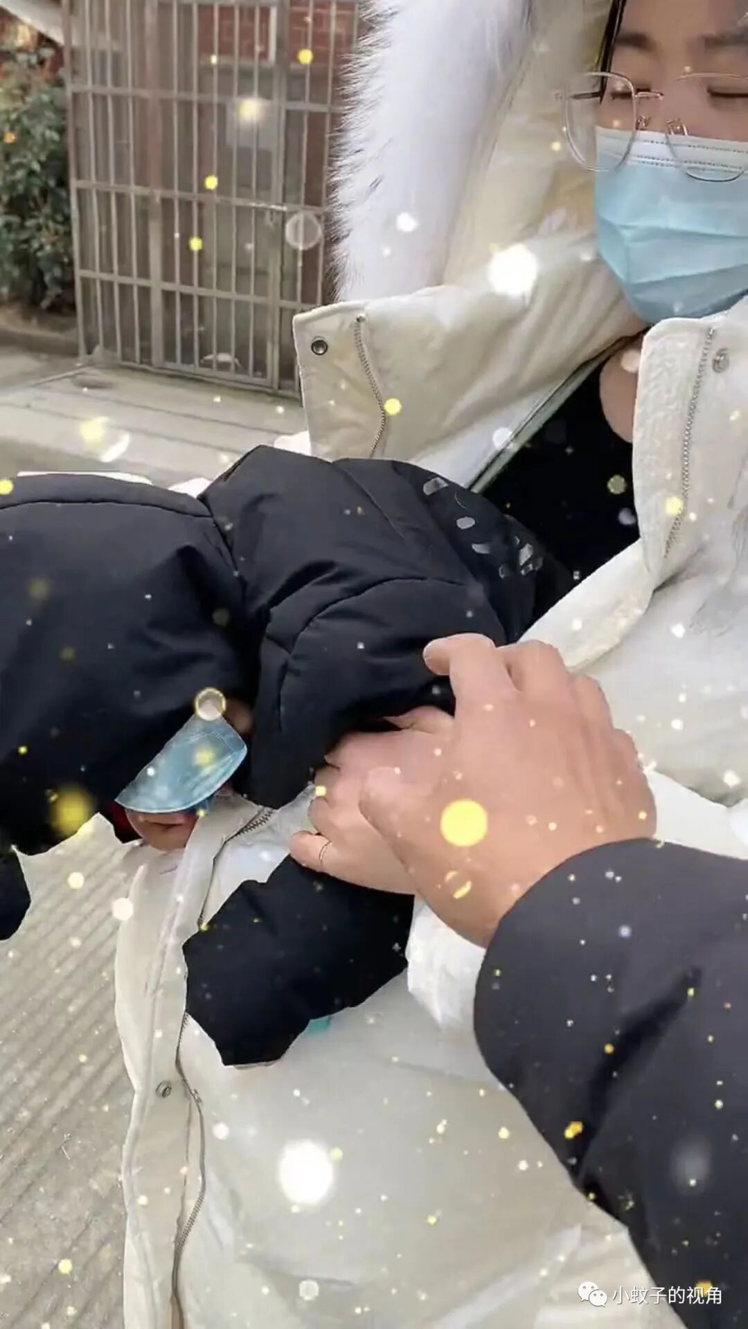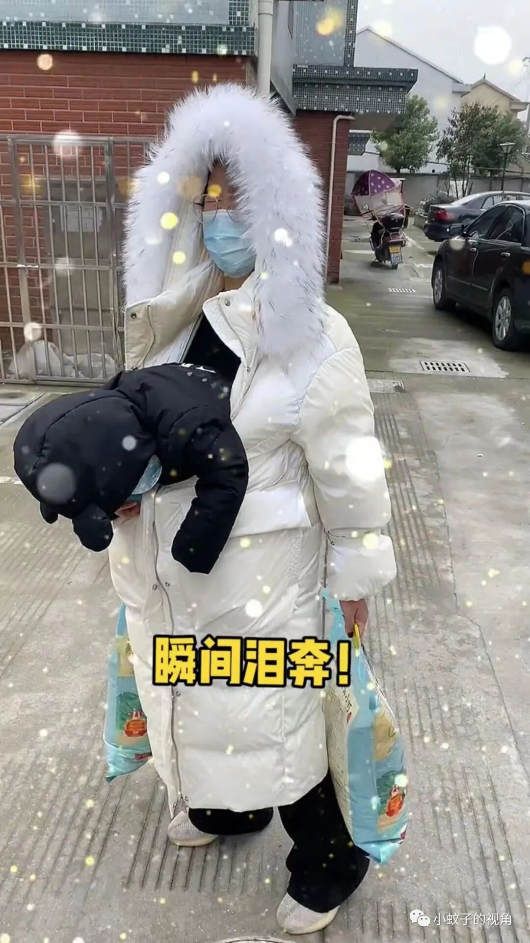 没想到,等女人转过身来时,他发现:果然是自己老婆,只是孩子还在她的怀里揣着呢!孩子好像是睡着了,正往前耷拉着头,看样子差点就要掉地上了。