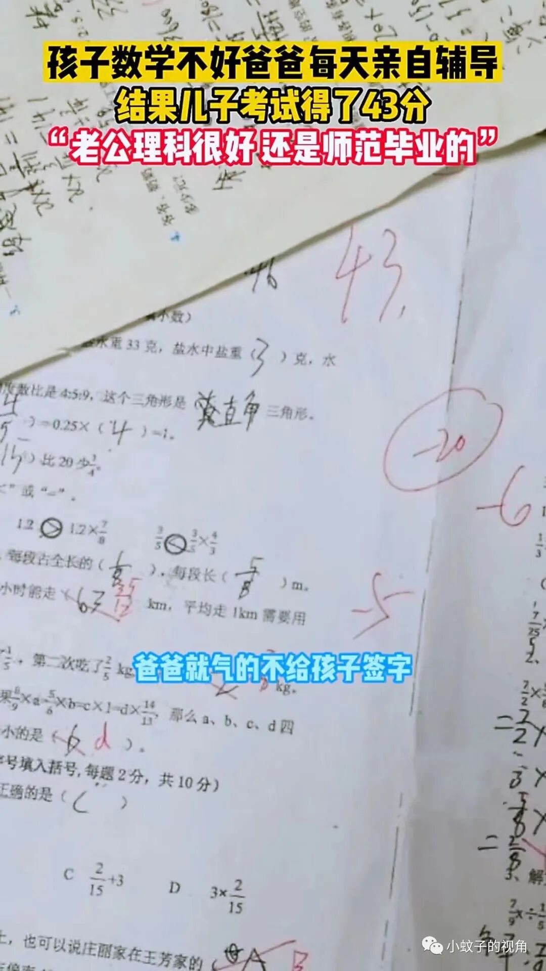 爸爸已经非常努力了,可孩子的学校进行测试时,孩子的数学成绩只考了43分!